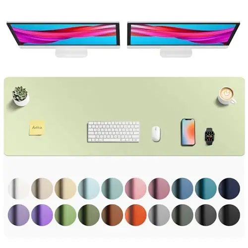 Aothia Faux Leather Desk Mat - Non-Slip PU Leather Desk Blotter, Waterproof Writing Surface, Large Desk Pad for Office & Home (Grass Green, 55" x 17")