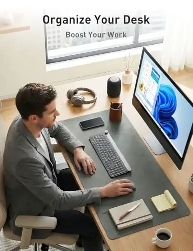 DESK PROTECTOR: Made of durable PU leather material, which protects your desk from scratches, stains, spills, heat and scuffs. It also gives your office a modern and professional atmosphere when you put it on your desktop. Its smooth surface will make you enjoy writing, typing and browsing. It is perfect for both office and home LARGE MOUSE PAD: 55" x 24" size provides ample space for your laptop, keyboard, and mouse. The smooth, comfortable surface works as a mouse pad, desk mat, blotter, and writing pad—perfect for both office and home use SPECIAL NON-SLIP DESIGN: Special suede design for back side,increase friction resistance with the desktop,Non slip.The friction resistance is increased by 70% than that of double-sided leather. WATERPROOF AND EASY TO CLEAN: Made of water-resistant and durable PU leather, this desk pad protects your desktop from spilled water, drinks, ink and the other liquid. Easy to clean, just wipe with a wet cloth or paper. PROMPT CUSTOMER SERVICE: We stand behind the quality of our desk mats. If there are any problems with your pad, , please contact the Aothia customer service team with relevant photos for a prompt investigation. we will provide corresponding solutions to reduce your shopping worries. Perfect gift choice for yourself,family and friends