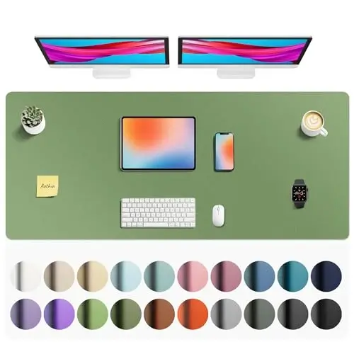 DESK PROTECTOR: Made of durable PU leather material, which protects your desk from scratches, stains, spills, heat and scuffs. It also gives your office a modern and professional atmosphere when you put it on your desktop. Its smooth surface will make you enjoy writing, typing and browsing. It is perfect for both office and home LARGE MOUSE PAD: 55" x 24" size provides ample space for your laptop, keyboard, and mouse. The smooth, comfortable surface works as a mouse pad, desk mat, blotter, and writing pad—perfect for both office and home use SPECIAL NON-SLIP DESIGN: Special suede design for back side,increase friction resistance with the desktop,Non slip.The friction resistance is increased by 70% than that of double-sided leather. WATERPROOF AND EASY TO CLEAN: Made of water-resistant and durable PU leather, this desk pad protects your desktop from spilled water, drinks, ink and the other liquid. Easy to clean, just wipe with a wet cloth or paper. PROMPT CUSTOMER SERVICE: We stand behind the quality of our desk mats. If there are any problems with your pad, , please contact the Aothia customer service team with relevant photos for a prompt investigation. we will provide corresponding solutions to reduce your shopping worries. Perfect gift choice for yourself,family and friends
