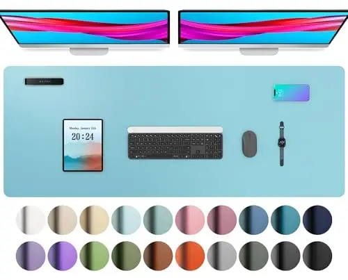 Aothia Large PU Leather Desk Pad Protector is poised to be an indispensable part of modern workspaces. This product not only protects your desk from scratches, spills, and daily wear and tear, but also provides you with a smooth and comfortable work surface. Its large surface area of 48" x 17" provides enough space for your keyboard, mouse, and other office supplies, while also creating an ideal surface for writing or drawing.The PU leather material stands out not only for its durability but also for its water-resistant properties. Liquids such as accidentally spilled coffee or tea can be easily wiped off, making the product extremely easy to clean and maintain. This feature is a great advantage, especially for those with a busy work schedule.The Aothia desk pad stays firmly on the table thanks to its non-slip base and prevents unwanted movements. In this way, you will not be distracted during your work and you will be more efficient. Its ergonomic design does not tire your wrists and arms even during long-term use, thus providing a more comfortable working experience.The Blue Topaz color not only adds elegance to your desk, but also brings tranquility and peace to your working environment. This color helps reduce eye strain and allows you to work in a more focused manner. Whether you use it in the office or at home, the Aothia Large PU Leather Desk Pad Protector makes your workspace more organized, more comfortable and more aesthetic.This desk pad is not only a protector, but also a style statement. With its modern design and high-quality material, it adds value to your workspace and offers a professional look. Rediscover your workspace with Aothia and increase your productivity.