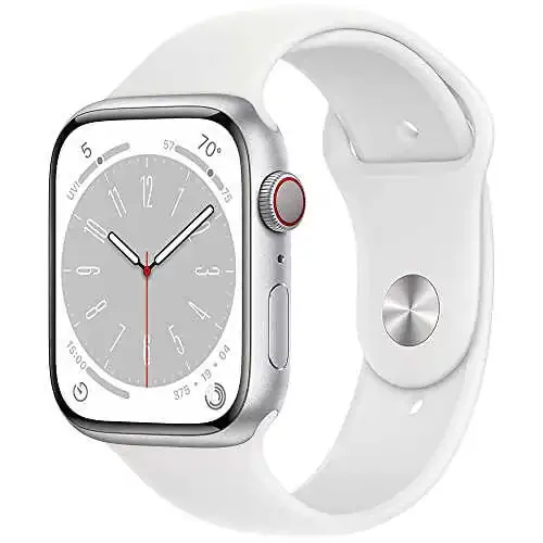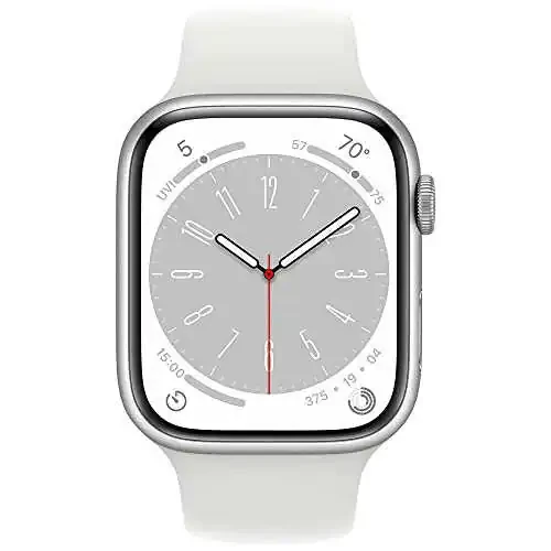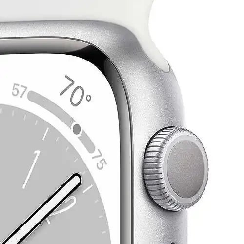 qayta tiklangan apple watch series 8, apple watch 8 gps, 45 mm apple watch, kumush alyuminiy korpus, oq sport tasmasi, apple watch series 8 narxi, qayta tiklangan aqlli soat