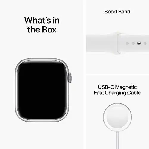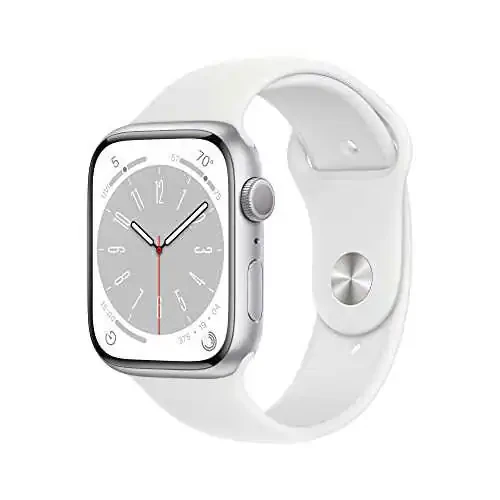Qayta tiklangan Apple Watch Series 8 [GPS, 45mm] Kumush alyuminiy korpus oq sport tasmasi bilan, M/L