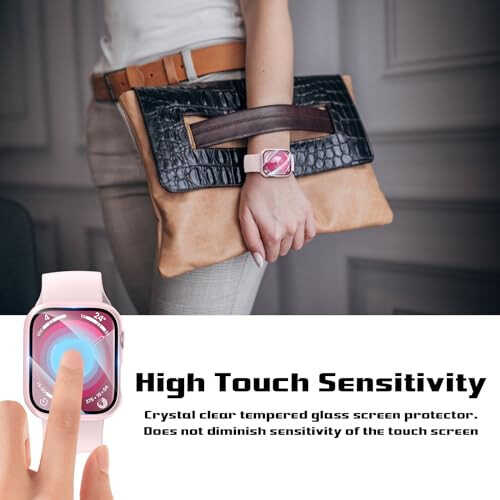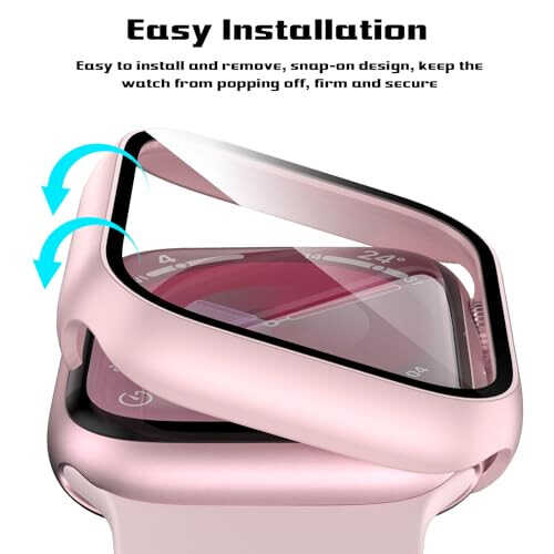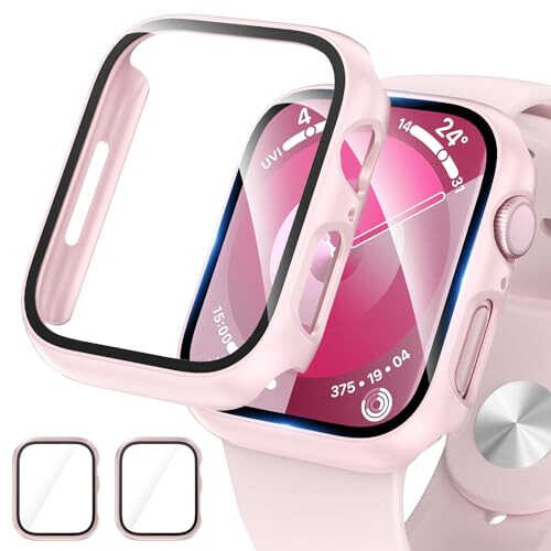 -COMPABILITY: Compatible with Apple Watch Series 9, Series 8 & Series 7 41mm. Please check your watch size at the back of watch dial before purchase. -Full Protection: This Apple Watch Series 9 Series 8 Series 7 41mm Screen Protector Case, hard PC pink case built in anti-scratch tempered glass screen protector, offer all around protection to your watch without compromising usability. -Easy to Install: Easy to install and remove, snap-on design, keep the iwatch series 9/8/7 case from popping off, firm and secure. Charge directly. -HD & Sensitive Touch: Ultra-thin crystal clear tempered glass with high transparency, keeps your Apple Watch Series 9 41mm screen, Series 8 Series 7 41mm screen touch sensitivity. High quality touch feel, nothing different but with more protection. -INCLUDE: 2 x hard PC case with tempered glass compatible for Series 9 Series 8 Series 7 41mm. Reminder: If you find any scratches/cracked/damages, please feel free to contact us directly, we will arrange new replacement.
