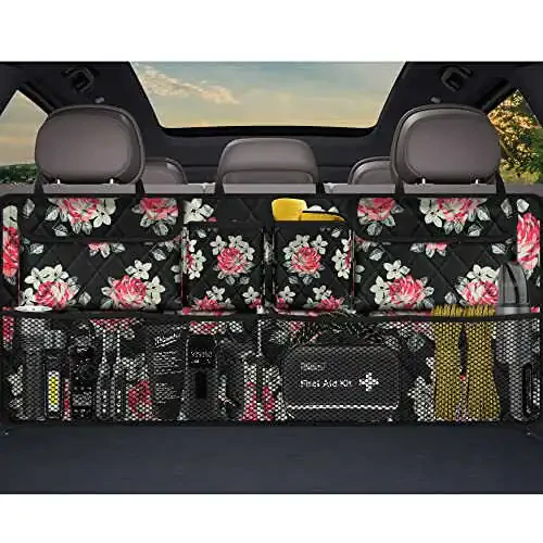 Car Trunk Organizer,Large Capacity Backseat Trunk Organizer(42"*18"),Collapsible Car Storage Bag with 8 Pocekt,Car Organizer for SUV/MPV/Truck - Floral