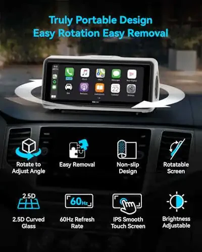 Apple CarPlay, Android Auto, taşınabilir, araç içi, ses sistemi, kablosuz, navigasyon, dokunmatik ekran, yüksek çözünürlük, güvenlik