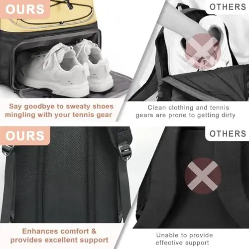 Привнесите стиль и порядок на корты с теннисной сумкой Arcoyard! Эта профессиональная теннисная сумка разработана для удовлетворения всех потребностей женщин-теннисисток. Просторное отделение для ракеток, вмещающее до 2 теннисных или пиклбольных ракеток, продуманный внутренний объем для организации вещей, удобная конструкция спины и прочные материалы позволяют вам сосредоточиться на игре. Эта теннисная сумка - не просто сумка, а выражение образа жизни. Стильный дизайн, практичность и универсальность делают ее идеальным компаньоном как на корте, так и в повседневной жизни. Благодаря большому внутреннему объему вы можете легко носить с собой спортивную одежду, полотенца, бутылку с водой и все остальное оборудование. Специально разработанное изолированное отделение сохраняет ваши напитки прохладными в течение нескольких часов, а вентилируемое отделение для обуви предотвращает неприятные запахи. Теннисная сумка Arcoyard отличается не только функциональностью, но и комфортом. Эргономичный дизайн, адаптирующийся к форме вашей спины, равномерно распределяет нагрузку на плечи. Благодаря регулируемым плечевым ремням вы можете отрегулировать сумку по своему росту и наслаждаться комфортной переноской. Высококачественный полиэстер 900D обеспечивает водонепроницаемость, устойчивость к пятнам и разрывам. Это гарантирует, что ваша сумка останется как новая на долгие годы. Теннисная сумка Arcoyard идеально подходит не только для игры в теннис, но и для других видов спорта, таких как пиклбол, бадминтон, сквош. Благодаря своей универсальности, она отвечает вашим различным потребностям и сопровождает вас повсюду. Будь то тренировка на корте, посещение спортзала или поездка на выходные, теннисная сумка Arcoyard всегда будет с вами. Короче говоря, теннисная сумка Arcoyard - отличный выбор для любителей тенниса и других видов спорта. Поднимите свой спортивный опыт на новый уровень с помощью этой сумки, которая сочетает в себе стиль, комфорт и долговечность!