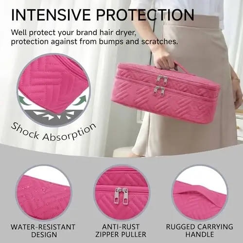 【Convenient and Protective】 - Hair tools travel bag safely store and carry your branded One-Step Hair Dryer/Volumizer/Styler with this double-layer travel carrying case. S hark flex style case provides excellent protection against scratches, bumps, and other damage during transportation. 【Water-Resistant Design】 - Hair bag Made of high quality material, the water-resistant material of the case ensures that your costly hair dryer/styler remains dry and protected even in wet conditions. No need to worry about accidental spills or moisture damage. 【Ample Storage Space】 - The styling tools & appliances case features a spacious main compartment with a double-layer design, allowing you to store your expensive hair dryer,your One-Step Hair Dryer/Volumizer/Styler along with its accessories. Keep everything organized in one place. 【Easy to Carry】 - The s hark hair dryer case is designed with a sturdy handle for convenient carrying. Whether you're traveling or simply need to transport your hair dryer/styler, this case makes it easy and hassle-free. 【Versatile and Stylish】 -This travel carrying case is not only functional but also aesthetically pleasing. Its sleek design and neutral color make it suitable for both men and women. It's a perfect accessory for anyone who wants to keep their hair styling tool safe and stylish on the go.