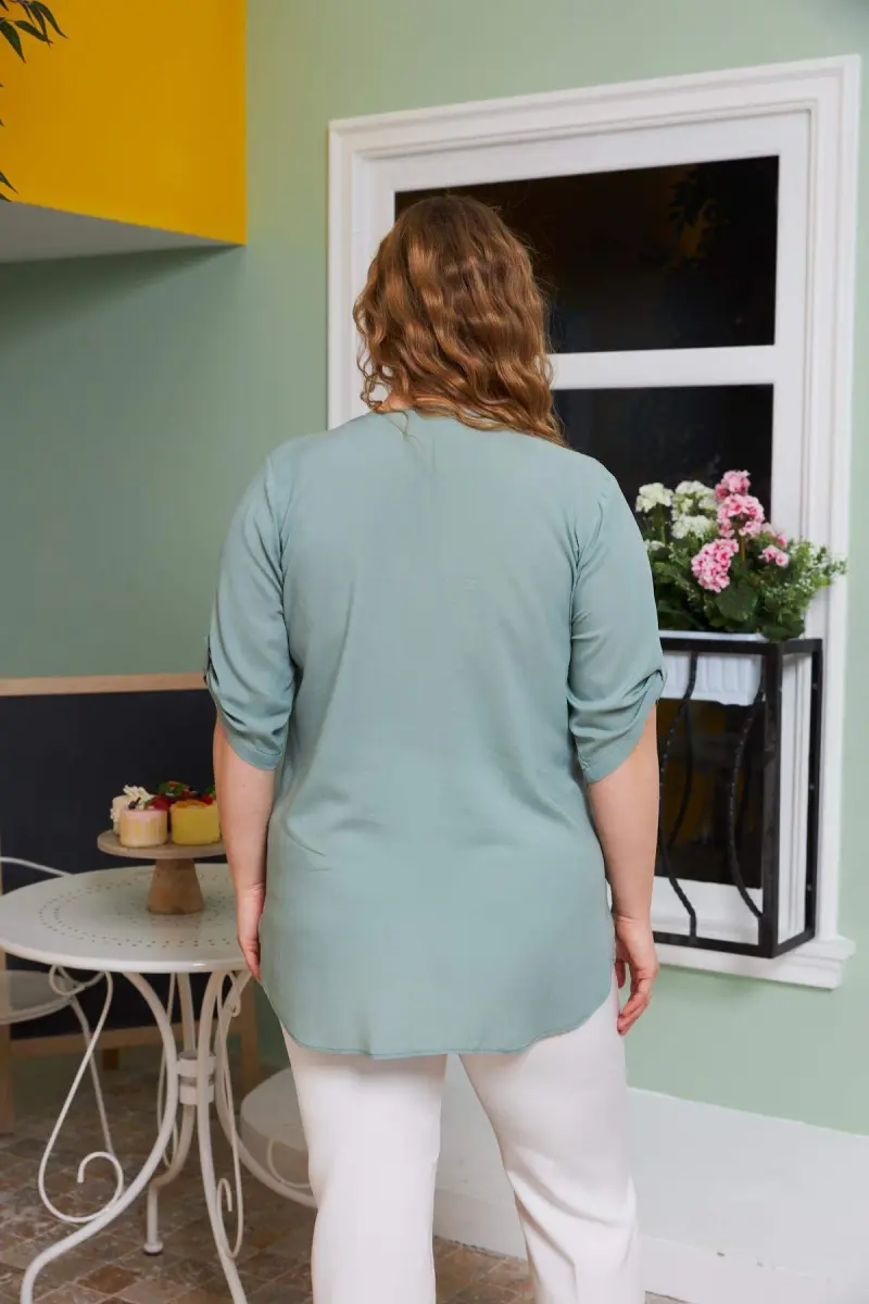 Sleeve Detailed Voile Viscose Plus Size Shirt Seafoam Green is a piece that combines comfort and elegance, attracting attention with its special design. Thanks to the lightness and breathability of the voile viscose fabric, it offers a comfortable wearing experience all day long. The seafoam green color represents naturalness and vitality, adding a refreshing touch to any combination. The sleeve details of the shirt add a unique touch to the design, while the plus size cut provides a perfect look by adapting to every body type. This shirt is a candidate to be an indispensable part of your wardrobe. You can create different styles by combining it with jeans in daily use or with a stylish skirt at a special occasion. The soft texture of the voile viscose fabric gives a pleasant feeling to your skin, while the draped cut of the shirt does not restrict your freedom of movement. You can start the day feeling refreshed with the energy of the seafoam green color and impress those around you with your elegance. The sleeve detailed design adds a modern and elegant touch to the shirt, while the plus size cut offers comfortable use. The seams of the shirt are carefully made and promise long-lasting use. The quality of the voile viscose fabric ensures that the shirt always looks like new. The seafoam green color is suitable for all seasons and can be easily combined with different colors. This shirt not only makes you look stylish but also makes you feel good. The natural structure of the voile viscose fabric does not irritate your skin and offers freshness throughout the day. The draped cut of the shirt gently covers your body lines, helping you to show a more confident stance. You can get away from the stress of the day with the soothing effect of the seafoam green color and spread joy around you with your positive energy. Sleeve Detailed Voile Viscose Plus Size Shirt Seafoam Green is the perfect choice to complete your style both in daily life and on special occasions. By adding this shirt, which offers comfort, elegance and unique design together, to your wardrobe, you can always look stylish and well-groomed. Remember, style is not just about clothes, but also about how you feel. This shirt will help you take your style to the next level by offering you both. The breathable structure of the voile viscose fabric prevents sweating in hot weather, while keeping you warm in cold weather. In this way, you can easily use the shirt in all seasons. The vibrancy of the seafoam green color warms you up in winter, while offering a fresh look in summer. The sleeve details of the shirt can be further emphasized by combining them with different accessories. For example, you can emphasize the elegance of the shirt by using a stylish bracelet or an elegant watch. The plus size cut adapts to every body type, creating a perfect silhouette. The draped structure of the shirt gently covers your body lines, helping you to look thinner and taller. The seafoam green color adapts to different skin tones, revealing the beauty of every woman. You can create different styles by combining the shirt alone or with a jacket or cardigan.