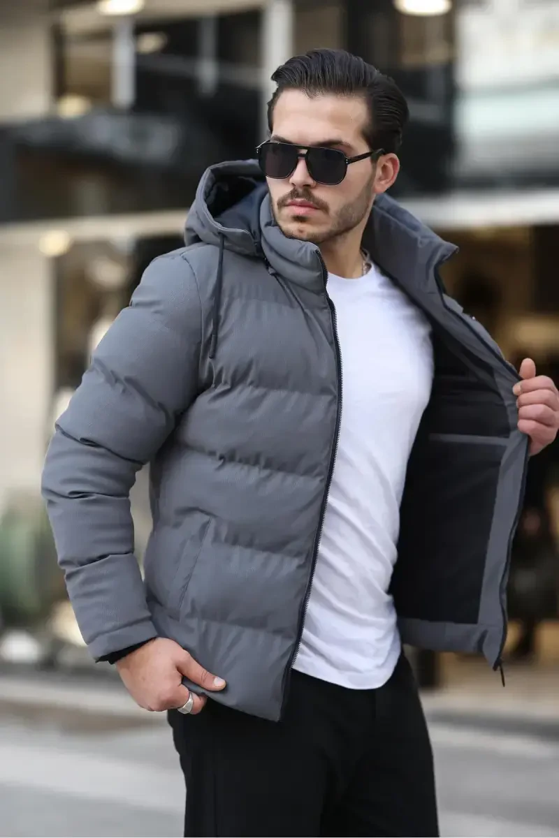Armali Karbon Teri Kapüşonli Mont - PLDP 2959 GRİ