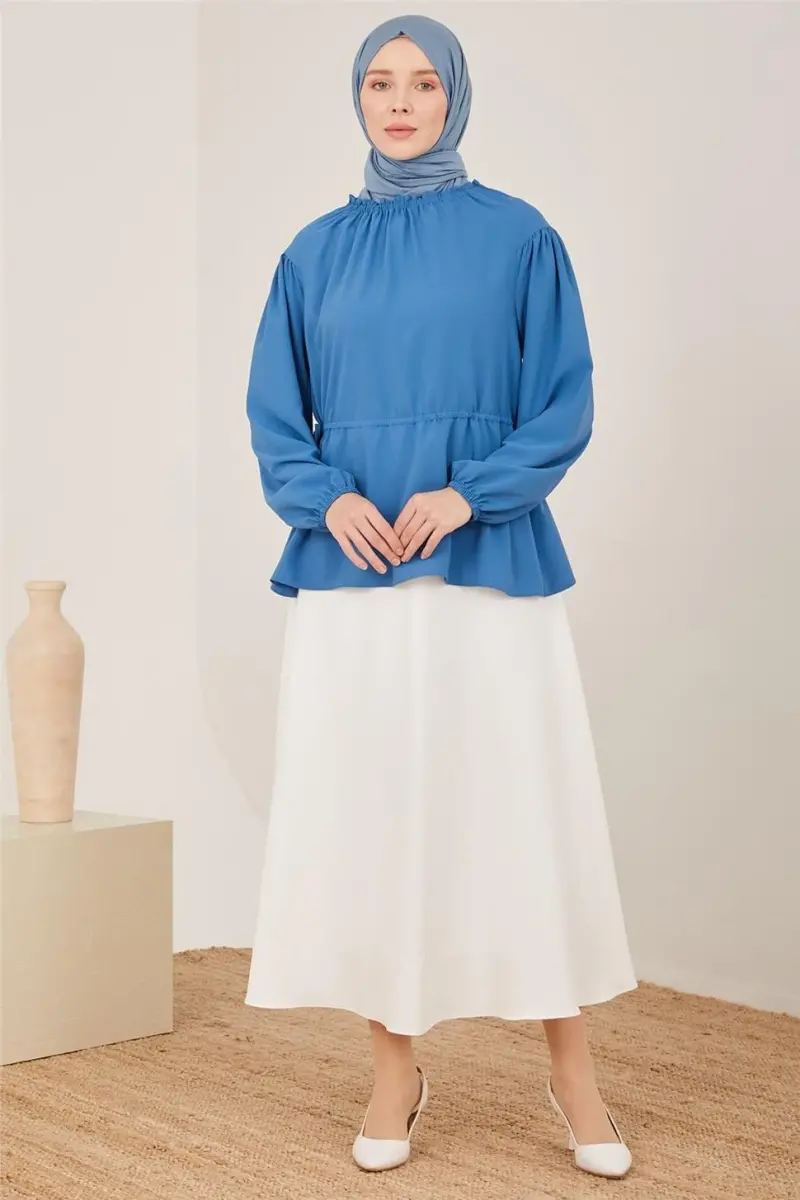 Bluzların formal tavrı,Modazone dokunuşu ile modern bir tavır kazanıyor. Bel detayı ile hareketlenen bluzu, mavi boy eteklerle ve topuklu ayakkabılarla tamamlayarak formal stilinize adapte edebilirsiniz. ÜRÜN BEDENİ: 38 MANKEN ÖLÇÜSÜ BOY: 175cm GÖĞÜS: 84cm BEL: 62cm BASEN: 92cm
