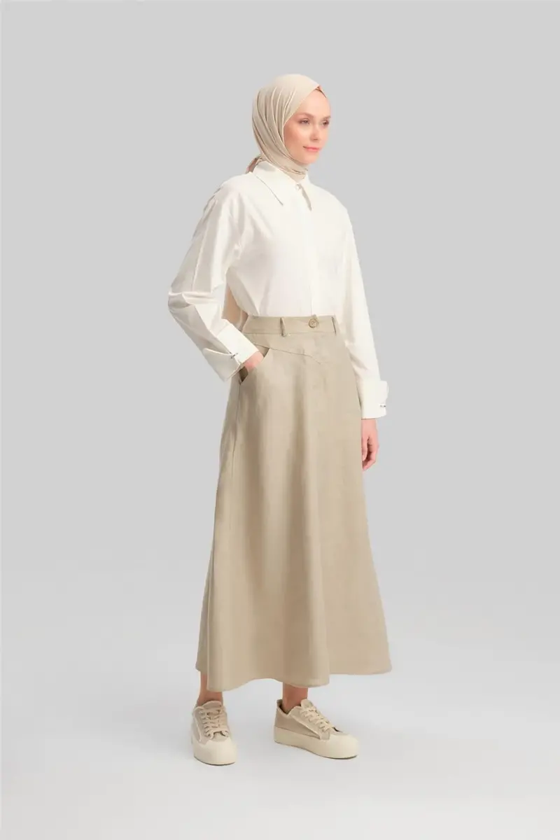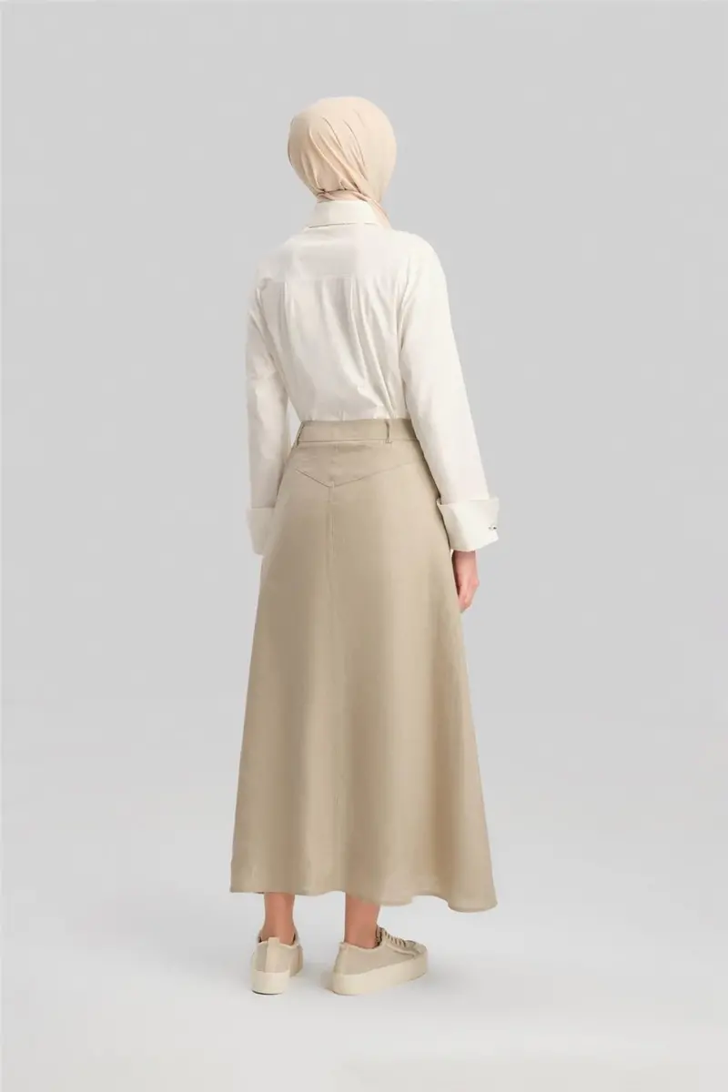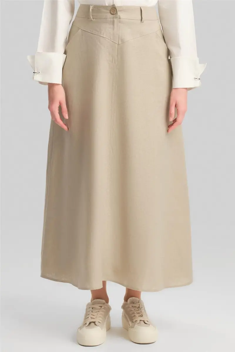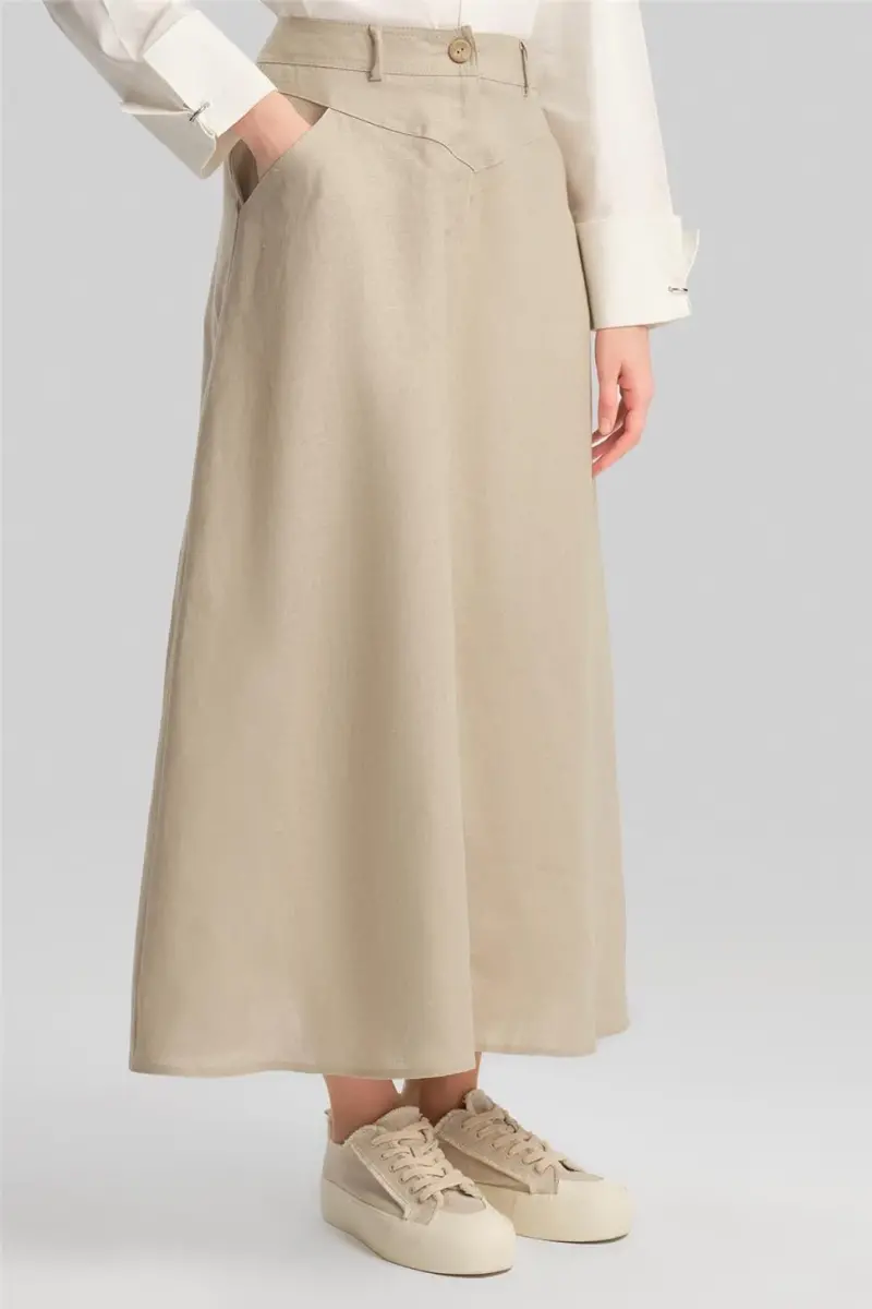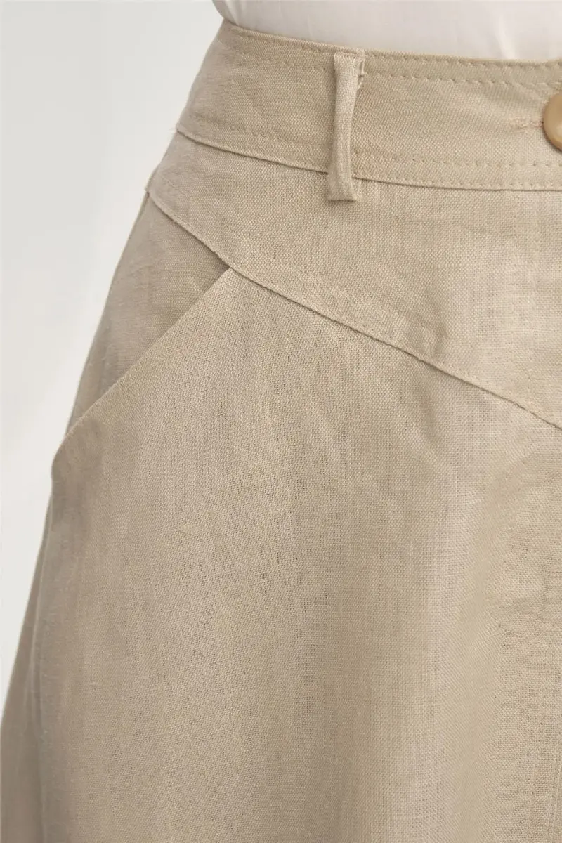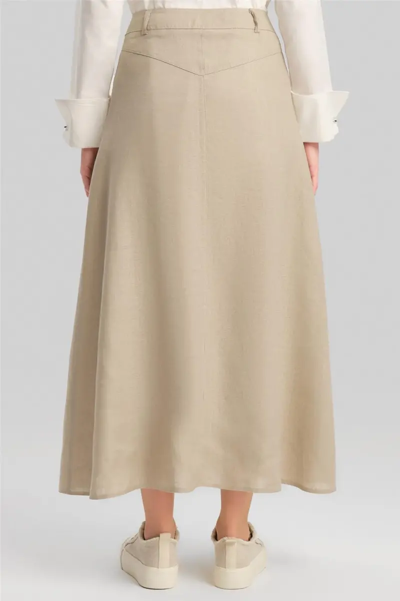 Armine Cep Detaylı Keten Etek 24Y1634 Vizon