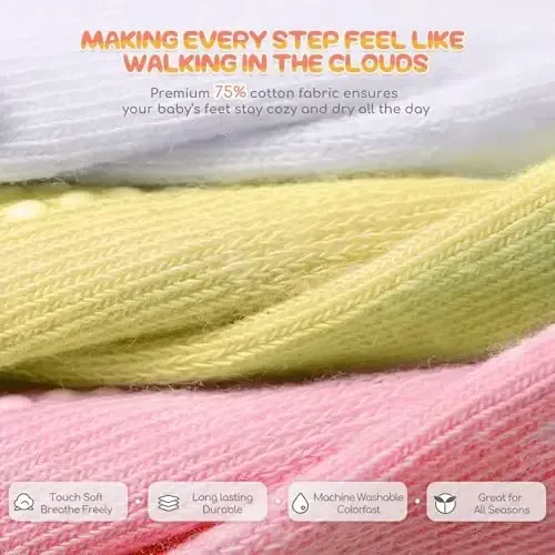 Little ones' steps are now safer and more stylish with Aroveea Baby Toddler Socks! This pack of 12 is specially designed for children aged 6 months to 7 years. Thanks to its cotton-rich blend, it gently touches your babies' delicate skin with its soft texture and provides all-day comfort. With its medium thickness and breathable structure, it can be used comfortably in all seasons. Thanks to its non-slip base, while your little ones safely run and play indoors or in playgrounds, you can enjoy them with peace of mind. Aroveea baby socks are not only comfortable but also attract attention with their stylish designs. With various color and pattern options, they easily adapt to any outfit and complete the style of little ones. Thanks to its elastic and flexible structure, it offers comfortable use even as babies' feet grow and prevents the socks from slipping. Aroveea prioritizes the health of babies and children and is produced from high-quality materials. Despite repeated washing, the non-slip base feature and colors remain like the first day. This provides long-lasting use. Aroveea Baby Toddler Socks are not only a perfect choice for daily use but also for special occasions. It is one of the most meaningful and useful gifts you can give to your loved ones on special occasions such as birthdays, New Year's or Children's Day. The fact that there are 12 pairs of socks in each package provides both variety and long-term use. These socks, which will be an indispensable part of the little ones' wardrobe, will be the choice of parents who prioritize their safety and comfort. With Aroveea, the world of little ones is more colorful, safer and more fun!
