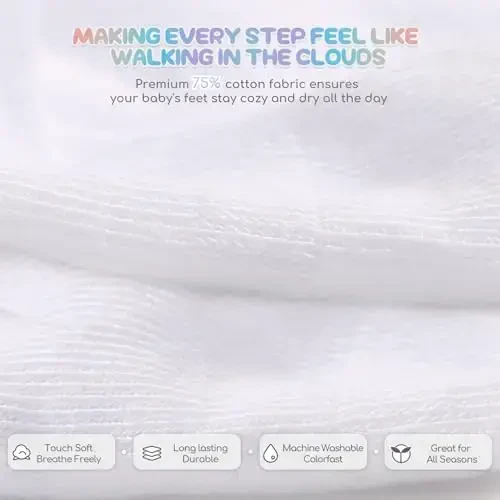 Aroveea Baby and Kids Socks are a special set of 12 that prioritize the safety and comfort of little ones and stand out with their cute designs. Ideal for children aged 6 months to 7 years, these socks minimize the risk of falling while allowing babies and children to move freely thanks to their non-slip soles. These socks, made from a cotton-rich blend, offer all-day comfort, are suitable for all seasons, and help the feet breathe. These medium-thick socks do not irritate sensitive skin with their soft textures. Produced with a combination of high-quality cotton and synthetic fibers, Aroveea socks offer comfort and durability together. Thanks to its flexible and stretchable fabric, it fits snugly even as your baby's foot grows and does not fall off easily. Its soft and breathable structure keeps your children's feet dry and comfortable all day long. The retaining dots on the soles of the socks retain their effectiveness even after repeated washing. The elastic ribbed cuffs and top belt provide extra support and help keep the sock in place. Thanks to the rear pull tabs, it is easy for children or parents to put on and take off the socks. Thanks to their cute patterns and various colors, they easily adapt to any outfit. Various size options are available, such as 6-12 months, 1-3 years, 3-5 years and 5-7 years. Aroveea non-slip socks not only increase safety but also offer reasonable comfort and durability. It is extremely versatile in terms of style with its various sizes, colors and patterns. This package of 12 socks each is a perfect choice for giving gifts for Christmas, birthdays, Children's Day and all other holidays. It is an ideal choice for parents who care about their children's foot health and safety.