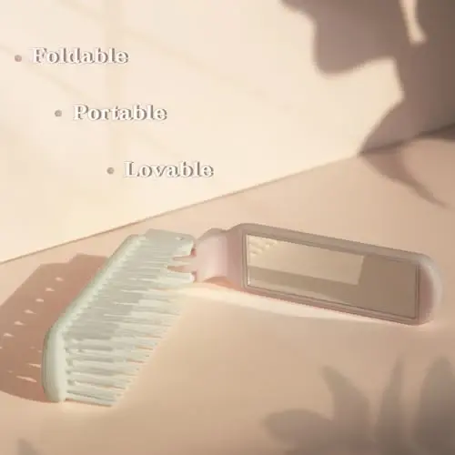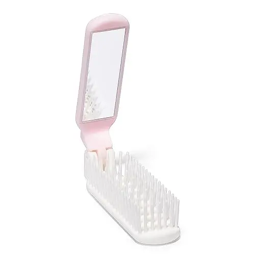 Arthaxi Foldable Hair Brush, Mirror and Styling Tip, Compact Travel Size for Women, Pink. Foldable design. Ideal for travel. Built-in mirror. Perfect for detangling and styling hair. Lightweight and compact. High-quality materials. Suitable for all hair types. Pink color.