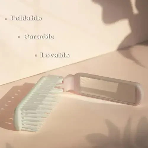 Katlanabilir saç fırçası, seyahat boyutu, dahili ayna, kompakt tasarım, pembe, saç şekillendirme, kadın, hafif, her saç tipi, tarama ucu