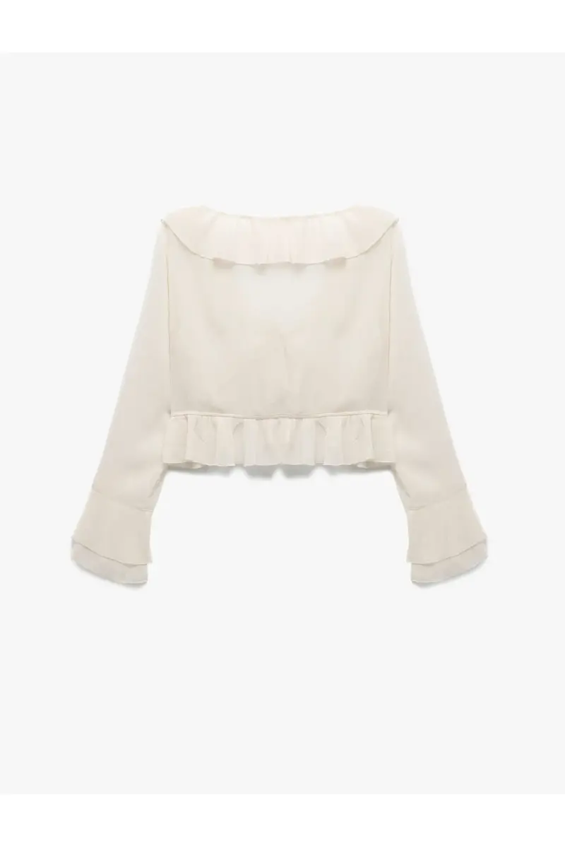 Добавьте современный и элегантный штрих в свой стиль с помощью блузки с асимметричными длинными рукавами и оборками, завязывающейся спереди. Этот уникальный дизайн, сочетающий в себе женственные детали и смелый крой, станет звездой вашего гардероба. Самой яркой особенностью блузки является деталь завязывания спереди, которая позволяет отразить ваш личный стиль с помощью различных стилей завязывания. Придайте романтичности, завязав ее стильным узлом, или создайте богемный образ, оставив ее более свободной. Асимметричный крой изящно подчеркивает ваш силуэт, создавая подвижный и динамичный вид. Длинные рукава согреют вас в прохладную погоду, не жертвуя при этом элегантностью. Детали оборок добавляют игривый и подвижный штрих в дизайн блузки. Оборки на вырезе или манжетах создают женственный вид, обогащая общий вид блузки. Эти детали превращают блузку из простого предмета одежды в модное выражение. Ткань блузки легкая и струящаяся, что обеспечивает комфорт в течение всего дня. Эта ткань, мягкая на ощупь, помогает вам выглядеть стильно, не ограничивая вашу свободу движений. Дышащая структура предотвращает потоотделение и сохраняет ощущение свежести в течение всего дня. Вы можете создать ослепительный образ, сочетая его с шикарной юбкой или брюками в особых случаях. В повседневной жизни вы можете создать более непринужденный и стильный образ, сочетая его с джинсами или шортами. Вы также можете создавать разные стили, выбирая обувь. Вы можете получить более шикарный вид с туфлями на каблуках или более непринужденный образ с кроссовками. Вы также можете дополнить стиль блузки, выбрав аксессуары. Изящное колье или серьги подчеркнут элегантность блузки, а яркий шарф или шляпа создадут более игривый вид. Эта блузка не только стильная, но и очень универсальная. Вы можете с комфортом использовать его в любой обстановке, от деловых встреч до званых обедов, от особых мероприятий до повседневных прогулок. Эта блузка, доступная в различных цветах и узорах, понравится любому вкусу и стилю и станет незаменимой вещью в вашем гардеробе. Откройте для себя блузку с асимметричными длинными рукавами и оборками, завязывающуюся спереди, чтобы выразить свой стиль и привлечь внимание в любой обстановке! Помните, стиль — это форма выражения, и эта блузка обещает стать вашим лучшим выражением.