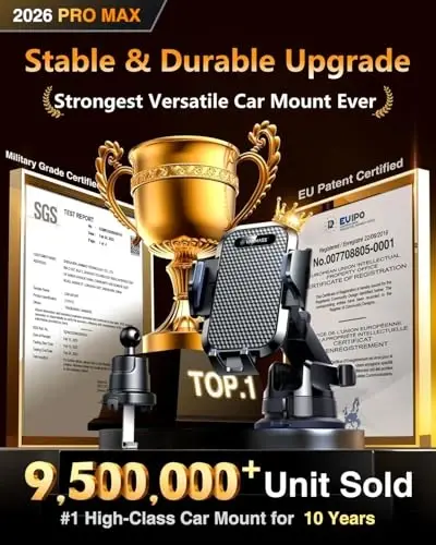 【True Military-Grade Certified, Ultimate Upgraded Model】Over the past decade of specializing in high-end car mounts, VANMASS have listened to the voices of millions users, rigorously tested to MILITARY GRADE standards (stability, compatibility, flexibility, security, durability). Finally, we overcome all weaknesses to design the Ultimate Model. This item obtained international military-grade shockproof certification No. GZMR220601855501 【Larger Suction Cup, Strongest Suction】The diameter of the suction cup has been increased from 2.5in to 2.8in, and the PU adhesive has been applied to increase the suction power by 44%. Over 85 pounds of suction means even the heaviest phones are secure on bumpy roads. The suction cup is easy to remove and can be washed clean and reused. Attention: Install suction cup on a flat surface, avoiding curves or leather surface 【Multi-Function Phone Stand for Dashboard / Windshield / Vent】Are you not sure which installation would best suit your vehicle? No problem the unit is extremely flexible!!! Dashboard, Windshield even air vent, all places work perfectly! 【Longer & Firmer Hook Clip - Fit 99% vent】Its innovative hooked construction perfectly solves the shortcomings of the previous generation air vent clips which were prone to loosening! Maximum hook length increased by 57%, compatible with 99% Vertical / Horizontal vent. Longer build reduces obstruction of air flowing out of vent. Attention: Hook is not compatible with round, cross, or diagonal car vents 【High-end = Quality Materials + Grandmaster Design】VANMASS car phone mount made of PC+ABS material has passed 4 environmental reliability tests and has a temperature resistance range of -40℉ to 194℉, it is also highly resistant to UV rays (Ensuring reliability even in the sun), and the telescopic pole uses a reinforced sliding rail structure to greatly reduce wobbling during driving. This suction phone cradle obtained CP65 / REACH / RoHS safety certifications 【Smoother "One-Click Release" & Perfect Protection】 You can easily place or remove the phone with one hand. After 7 structural reliability tests, we have upgraded the internal parts of the phone holder to improve the experience of using the"One-Click Release" function, which is smoother and more reliable. We also have used a more flexible silicone arm to hold your phone more securely and prevent it from being scratched by plastic 【Free Angle Adjustment】The long arm telescopic pole offers 4.1in~5.8in length adjustment and 270° angle adjustment, while the back of the phone holder has a 360° rotatable ball, these flexible parts allow you to use your phone at the most comfortable angle 【Sturdy Hold Any Phone from 4 to 7 inch】To adapt to different phones and cases, VANMASS was the first to invent adjustable side clamps and feet. We have also designed a non-slip fingerprint area on the side clamps so that you can hold your phone more easily with one hand. This mount is compatible with all mobile phones between 4 and 7 inch, compatible with iPhone 17 Pro Max 16 15 14 13 12 11 XR X SE mini,for Samsung Galaxy S25 Ultra S24 S23 S22 S21 A53 A22,for Pixel,for Xiaomi,for Motorola, etc