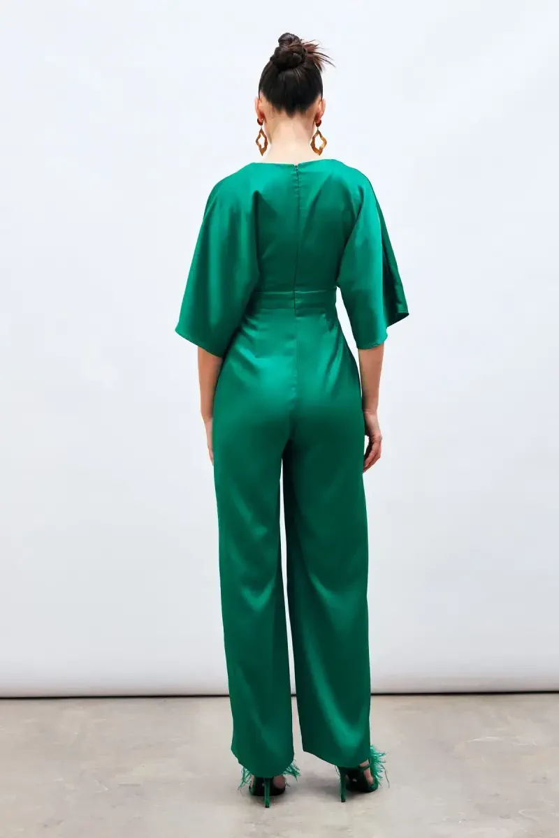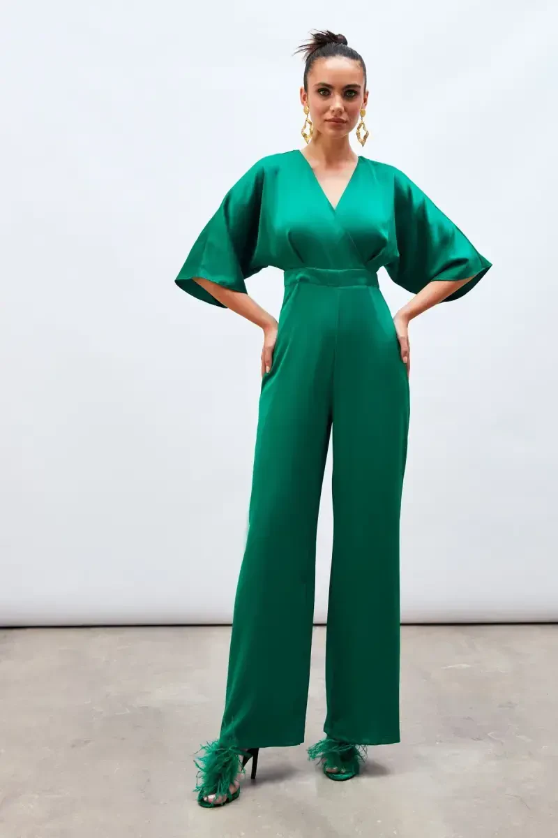 O'ralgan Bo'sh Kombinezon, zümrutti yashil rangi bilan kiyim shkafingizga jon bag'ishlaydi va har qanday kombinatsiyangizni to'ldiradi. Hoziroq buyurtma bering va uslubingizni kashf eting!