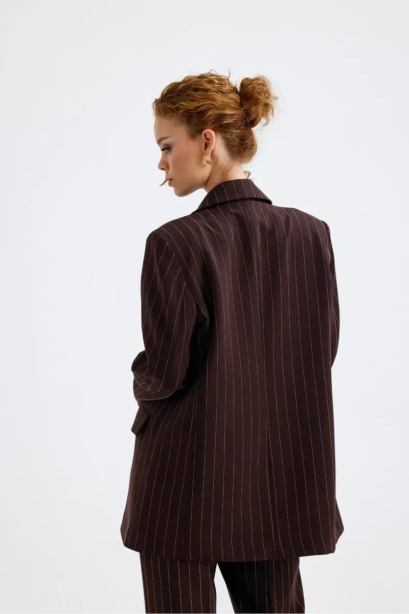 Takım Elbise, Hürrem Kumaş, Çizgili Takım, Kahve Beyaz, Astarlı Takım, Kadın Takım, Şık Takım, Ofis Giyim, Özel Gün Takım, Rahat Takım