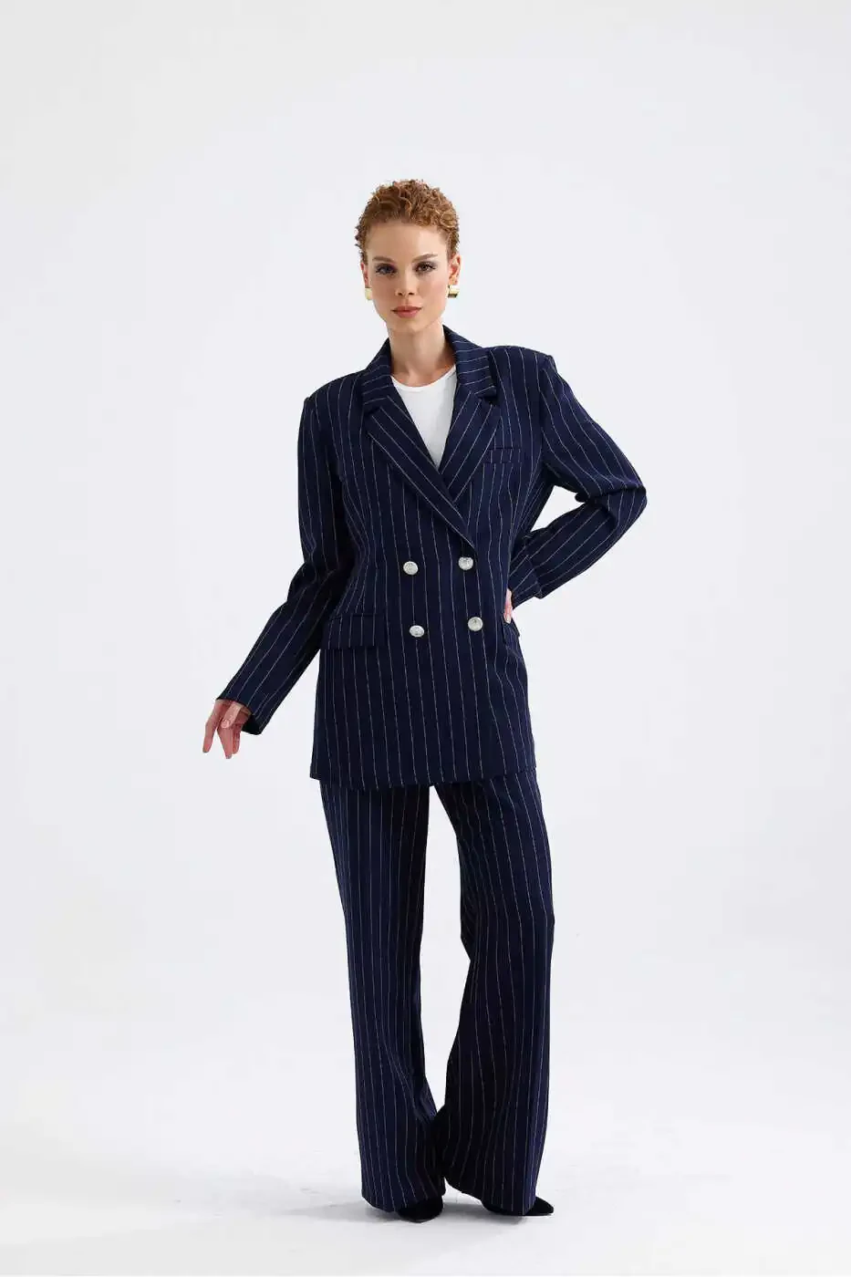 Astarlı Hürrem Kumaş Çizgili Takım Elbise, modern çizgileri ve zamansız tasarımı ile gardırobunuzun vazgeçilmez parçası olmaya aday. Lacivert ve beyazın uyumu, klasik çizgi deseni ile birleşerek sofistike bir görünüm sunar. Hem iş hayatında hem de özel davetlerde rahatlıkla tercih edebileceğiniz bu takım elbise, üst düzey konfor ve şıklığı bir araya getiriyor.Hürrem kumaşın eşsiz dokusu, üzerinizde adeta yokmuş hissi yaratırken, astarlı yapısı ile de gün boyu rahat etmenizi sağlar. Takımın ceket ve pantolonundan oluşan bu kombinasyonu, farklı parçalarla kombinleyerek tarzınızı konuşturabilirsiniz. Ceketi şık bir bluz ve etekle, pantolonu ise basic bir tişörtle kullanarak farklı stiller yaratmanız mümkün.Takımın kesimi, vücut hatlarınızı kusursuz bir şekilde ortaya çıkarırken, hareket özgürlüğünüzü kısıtlamaz. Dikiş detayları ve kullanılan malzemelerin kalitesi, takımın uzun ömürlü olmasını sağlar. Lacivert beyaz çizgi deseni, takıma dinamik bir hava katarken, klasik kesimi ise her zaman moda olan bir tarz sunar.Astarlı Hürrem Kumaş Çizgili Takım Elbise ile girdiğiniz her ortamda dikkatleri üzerinize çekecek, şıklığınızla fark yaratacaksınız. Hem günlük kullanım hem de özel günler için ideal olan bu takım elbise, gardırobunuzun en sevilen parçası olmaya hazır. Şimdi bu eşsiz takımı keşfedin ve tarzınıza yeni bir soluk getirin!