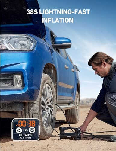 AstroAI T3 — это мощный портативный автомобильный компрессор 12 В для бездорожья. В комплект поставки входят компрессор с производительностью 1,97 CFM и давлением 120 PSI, крокодильи зажимы, светодиодный фонарь. Подходит для пикапов, грузовиков, внедорожников, автофургонов и автомобилей с шинами до 33 дюймов. Этот мощный и надежный компрессор обеспечивает высокую производительность благодаря технологии TurboRise. Время непрерывной работы составляет 25 минут, что позволяет легко накачать несколько шин. Для удобства использования доступны четыре единицы измерения (кПа, PSI, BAR, кг/см²). Длинный силовой кабель и встроенный светодиодный фонарь упрощают использование даже ночью или в условиях низкой освещенности. Приверженность AstroAI качеству и удовлетворенности клиентов гарантирует, что этот продукт станет долговечной и надежной инвестицией. Если вы ищете идеальное решение для быстрого и легкого накачивания шин вашего автомобиля, AstroAI T3 — это ваш выбор.