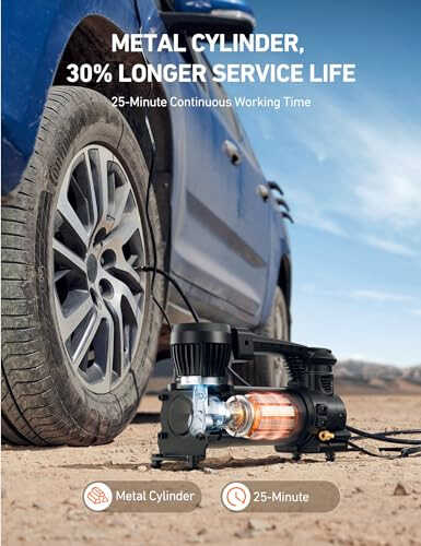 **Ürün Açıklaması**AstroAI T3 Ağır Hizmet Tipi Hava Kompresörü, 12V taşınabilir, arazi tipi hava kompresörüdür. 1.97 CFM, 120 PSI'lık lastik pompası, timsah klipsleri, LED ışığı ile birlikte gelir ve pikaplar, kamyonlar, SUV'lar, karavanlar ve 33 inçe kadar lastiklere sahip otomobiller için uygundur. Bu güçlü ve güvenilir kompresör, TurboRise teknolojisi sayesinde yüksek performans sunar. 25 dakikalık kesintisiz çalışma süresi ile birden fazla lastiği kolayca şişirebilirsiniz. Dört farklı birim (kPa, PSI, BAR, KG/cm²) seçeneği ile kullanım kolaylığı sunar. Uzun güç kablosu ve entegre LED ışık, gece veya loş ortamlarda bile kullanımı kolaylaştırır. AstroAI'nin kalite ve müşteri memnuniyetine verdiği önem, bu ürünün uzun ömürlü ve güvenilir bir yatırım olmasını sağlar. Aracınızın lastiğini hızlı ve kolay bir şekilde şişirmek için mükemmel bir çözüm arıyorsanız, AstroAI T3 tam size göre.**Ürün Özellikleri*** TurboRise Teknolojisi ile güçlendirilmiş, 1.97 CFM ve 120 PSI kapasiteli yüksek performanslı motor.* 25 dakikalık kesintisiz çalışma süresi (ortalama kompresörlere göre bir lastik daha şişirme kapasitesi).* 275/60R20 lastikleri 40 PSI'dan 45 PSI'a 38 saniyede, 36 PSI'dan 45 PSI'a ise 1.25 dakikada şişirme yeteneği.* kPa, PSI, BAR ve KG/cm² olmak üzere 4 farklı birim seçeneği ile kolay ve anlaşılır kullanım.* 2 adet hava ucu, 1 adet bisiklet Presta-Schrader adaptörü, 1 adet taşıma çantası ve 1 adet kullanım kılavuzu dahildir.* 4.9 metre (16.1 feet) hava hortumu ve 2.5 metre (8.2 feet) güç kablosu ile geniş erişim alanı.* Kompresör çalışırken otomatik olarak yanan LED ışık, karanlık ortamlarda kullanım kolaylığı sağlar.* 33 inçe kadar olan lastikler için uygundur.* Pikaplar, kamyonlar, SUV'lar, arazi araçları, 4x4'ler, karavanlar ve otomobiller için idealdir.* Yüksek kaliteli malzemeler ve gelişmiş üretim teknikleri ile uzun ömürlü ve güvenilir kullanım.* AstroAI'nin üstün kalite ve müşteri hizmetleri garantisi ile desteklenmektedir.**Ek Bilgiler**AstroAI T3 Ağır Hizmet Tipi Hava Kompresörü, aracınızın lastiğini şişirmek için ihtiyacınız olan her şeye sahip, kullanımı kolay ve güvenilir bir üründür. Uzun ömürlü performans için tasarlanmıştır ve her türlü arazi koşulunda bile size yardımcı olacaktır. Güçlü motoru ve uzun çalışma süresi ile zamandan tasarruf etmenizi sağlar. Eğer güvenilir, yüksek performanslı ve kullanımı kolay bir hava kompresörü arıyorsanız, AstroAI T3 tam size göre. Kısa bir çalışma süresinden sonra cihazı tekrar kullanmadan önce 10 dakika beklemeniz önerilir. Ürünle birlikte gelen kullanım kılavuzunu dikkatlice okuyarak cihazı doğru ve güvenli bir şekilde kullanabilirsiniz. AstroAI, müşteri memnuniyetini önceliklendirir ve herhangi bir sorunla karşılaşmanız durumunda size yardımcı olmak için hazırdır.