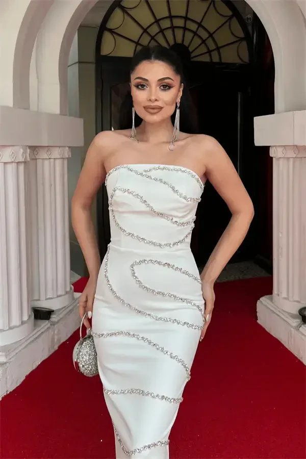 Experience elegance and sophistication with the Atlas Fabric Stone Detailed Pencil Dress! This special design dress is a candidate to be an indispensable part of your wardrobe. Combining the purity of white and the luxurious texture of atlas fabric, this pencil dress will allow you to shine in any environment, from special invitations to business meetings. The pencil cut of the dress perfectly reveals your body lines, while the stone details add a sophisticated touch to the design.The distinctive shine and draped structure of the atlas fabric add a different ambiance to the dress, while offering comfortable use. The back zipper makes it easy to put on and take off, while the bustier detail provides comfortable use without the need for underwear. Thanks to its lining, this dress, which is non-see-through and fits the body perfectly, will make you feel safe and stylish all day long.This special design pencil dress is an ideal choice for women who embrace both classic and modern styles. Whether you combine it with high heels to attend a stylish invitation, or complete it with ballet flats to achieve a more casual elegance. This dress, with which you can create different styles with accessory selection, will always make you look stylish.The Atlas Fabric Stone Detailed Pencil Dress not only aims to make you look stylish, but also aims to make you feel good. Thanks to the quality of its fabric and the care in its workmanship, it is a piece that will remain in your wardrobe for many years. This dress, which will accompany you in your special moments and daily life, will be the most elegant way to reflect your style. With the nobility of white and the sparkle of stone details, you will attract attention in any environment. Add this unique dress to your wardrobe and add elegance to your elegance!