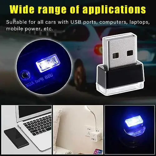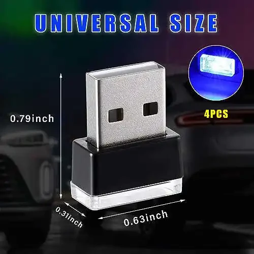 4 Adet USB LED Araba İç Atmosfer Lambası (Mavi)