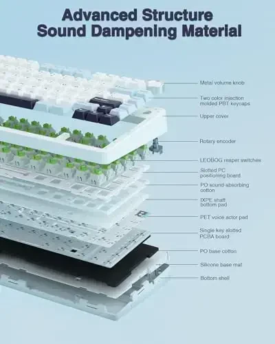 - Yumshoq va jim matn kiritish tajribasini ta'minlaydigan gasket montaj tizimi