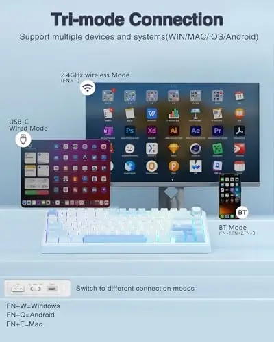 AULA F75 ile oyun deneyiminizi ve üretkenliğinizi zirveye taşıyın! Bu üstün özelliklere sahip, %75 boyutundaki mekanik klavye, estetik tasarımı, kablosuz özgürlüğü ve kişiselleştirilebilir yapısıyla sizi büyüleyecek. Salt White Blue renk kombinasyonuyla göz alıcı bir görünüme sahip olan AULA F75, performans ve stilin mükemmel bir birleşimini sunar.AULA F75, hot-swappable özelliği sayesinde, lehimleme işlemine gerek kalmadan switch'lerinizi kolayca değiştirmenize olanak tanır. Bu sayede, klavyenizi tamamen kendi zevkinize ve oyun tarzınıza göre özelleştirebilirsiniz. Fabrika çıkışlı olarak önceden yağlanmış (pre-lubed) Greywood switch'ler, tuşlara her basışınızda akıcı ve tatmin edici bir his sunarak, oyunlardaki tepki sürenizi artırır ve uzun süreli kullanımlarda bile konforunuzu korur.RGB arka aydınlatma özelliği, klavyenize canlı ve dinamik bir görünüm kazandırır. Farklı aydınlatma modları ve renk seçenekleri ile masanızı kişiselleştirerek, oyun atmosferinizi daha da zenginleştirebilirsiniz. AULA F75, sadece oyun tutkunları için değil, aynı zamanda uzun saatler yazı yazan profesyoneller için de ideal bir seçimdir. Ergonomik tasarımı ve yüksek kaliteli malzemeleri sayesinde, parmaklarınızı yormadan rahat bir kullanım deneyimi sunar.AULA F75, kablosuz bağlantı seçenekleri ile size tam bir özgürlük sunar. 2.4GHz kablosuz bağlantı, ultra düşük gecikme süresiyle rekabetçi oyunlarda bile kusursuz bir performans sağlar. Type-C kablolu bağlantı ise, şarj olurken bile klavyenizi kullanmaya devam etmenizi mümkün kılar. Bluetooth 5.0 teknolojisi sayesinde, aynı anda birden fazla cihaza bağlanabilir ve kolayca geçiş yapabilirsiniz. İster masaüstü bilgisayarınızda oyun oynayın, ister tabletinizde yazı yazın, AULA F75 her zaman yanınızda.AULA F75, sadece bir klavye değil, aynı zamanda bir yaşam tarzı ifadesidir. Şık tasarımı, üstün performansı ve kişiselleştirilebilir özellikleriyle, beklentilerinizi aşacak bir deneyim sunar. Oyun dünyasının ve profesyonel hayatın vazgeçilmezi olmaya aday bu klavye ile fark yaratmaya hazır olun!