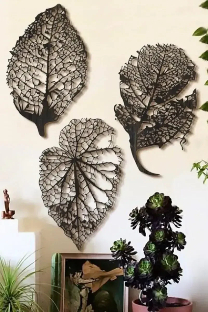 Want to bring the serenity and elegance of nature into your home or office? The 3-Piece Black Leaf Wooden Wall Art is a captivating decoration piece that stands out with its graceful design and natural materials. Composed of three leaf motifs reminiscent of autumn's enchanting leaves, the artwork presents a minimalist and modern aesthetic. Carefully crafted from high-quality wooden material, the wall art offers both durability and sophistication.