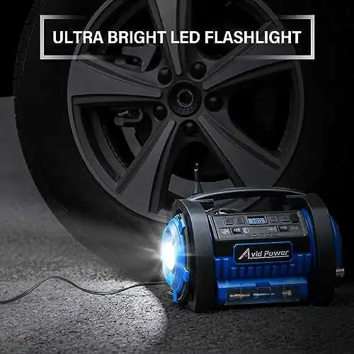 AVID POWER ko'chma havo kompressori avtomobil shinalari, velosiped shinalari, sport anjomlari va puflanadigan to'shaklarni tez va oson shishirish imkonini beradi. Kuchli qo'sh motori tufayli u super tez shishirish ish faoliyatini taqdim etadi. Ham 12V avtomobil sigaret qutisi kirishi, ham 120V uy rozetkasi bilan ishlaydigan ushbu kompressor uyda, yo'lda yoki ochiq havoda foydalanish uchun idealdir. Raqamli bosim ko'rsatkichi va avtomatik o'chirish funksiyasi xavfsiz va aniq shishirishni ta'minlaydi. Bundan tashqari, shishirish va bo'shatish rejimlari tufayli ko'p qirrali foydalanish imkoniyatini beradi. Kechasi foydalanishni osonlashtiradigan yorqin LED chiroq favqulodda vaziyatlarda ham siz bilan birga. Bardoshli va ko'chma dizayni bilan uni har doim o'zingiz bilan olib yurishingiz mumkin. Ushbu mahsulot ko'plab avtomobil shinalari, jumladan, SUVlar uchun mos keladi, ammo og'ir tijorat avtomobil shinalari uchun mos EMAS. Mahsulot bilan birga uch xil nozzle adapteri, yuqori hajmli shlang va foydalanuvchi qo'llanmasi keladi.