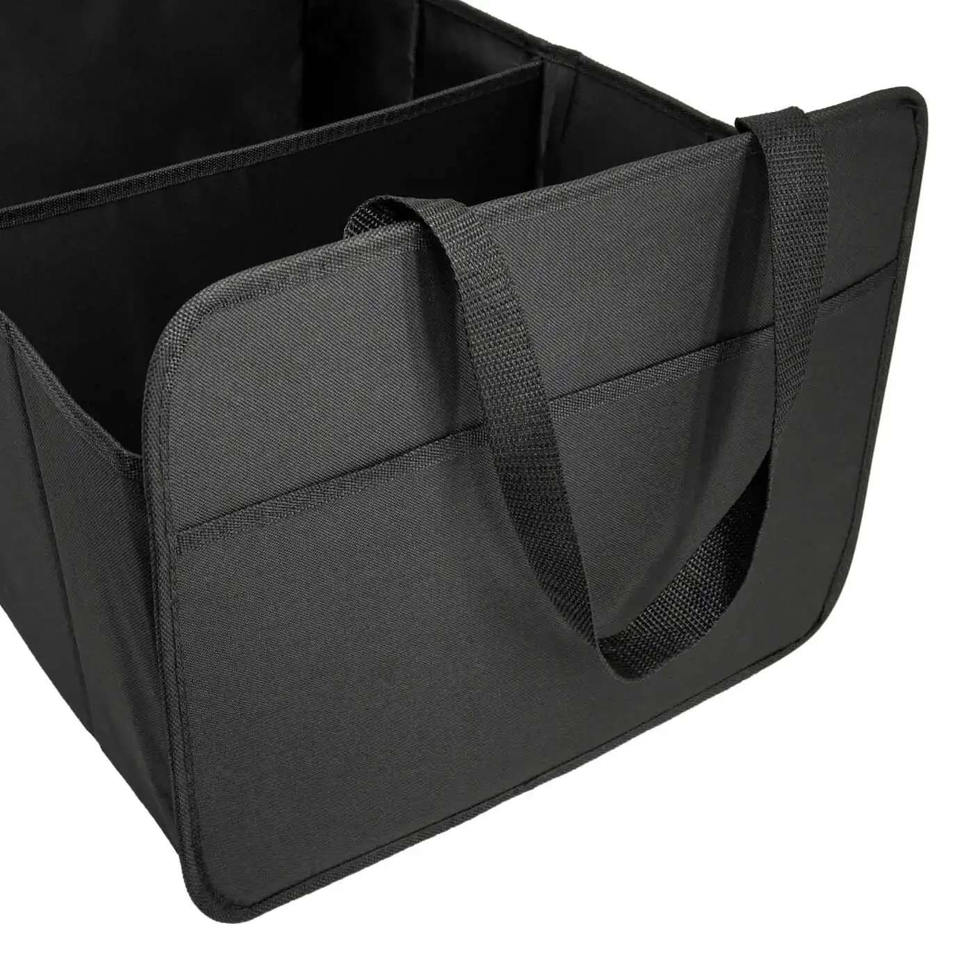 Auto Drive Automotive Black Hard-Sided Collapsible Trunk Organizer 1 Pack, 18,5"x 16,54"x 9,96". Это очень удобный органайзер для багажника, который поможет загрузить много предметов первой необходимости во время автомобильных поездок. Он содержит большое отделение, которое можно гибко разделить на два одинаковых контейнера, чтобы удовлетворить ваши потребности в загрузке вещей разных размеров с максимальным весом загрузки 5 килограммов. Он также поддерживает использование половины органайзера с помощью ручного закрытия половины органайзера, если у вас не так много вещей для хранения. На каждом конце контейнера есть ручки для переноски, которые помогут вам легко переместить его в любое удобное для вас место. Наилучшее применение — в багажнике автомобиля, он не требует специального типа транспортного средства, отличаясь универсальной совместимостью со всеми. Вы также можете разместить его на автомобильных сиденьях, чтобы помочь вам навести порядок в салоне автомобиля, и его можно использовать для хранения коллекции игрушек в доме! Если вам не нужно его использовать, просто сложите его в тонкий компактный и отложите в сторону, он не займет много места для хранения! Если на него попадут пятна или пыль, просто почистите его сухой чисткой и избегайте отбеливателя!