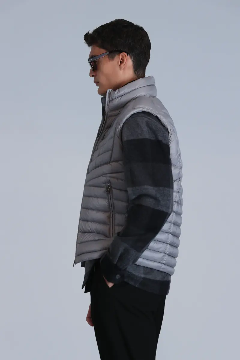 пуховый жилет, мужской жилет, серый жилет, жилет для активного отдыха, дутый жилет, жилет, сохраняющий тепло, легкий жилет, жилет на молнии, безрукавка, мужская одежда