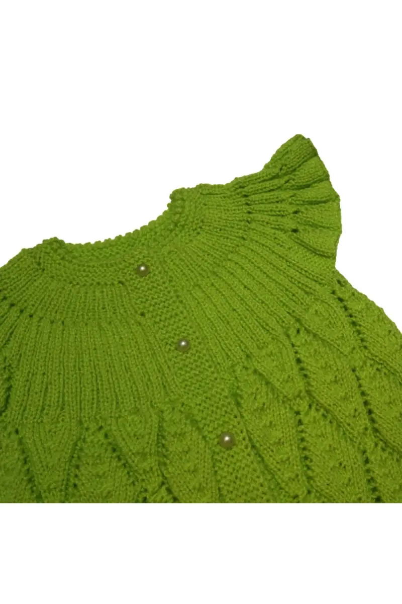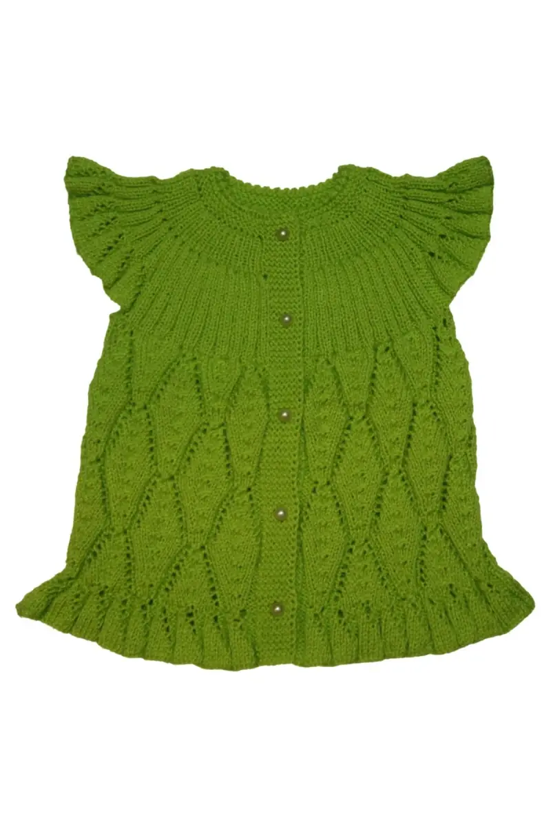 Aykır-ı Bebe El Örgüsü İğde Yaprağı Motifli Bebek Yeleği-Fıstık Yeşili
