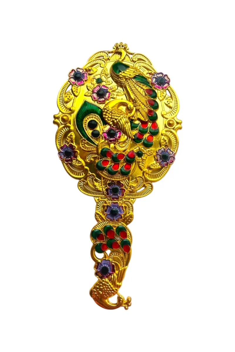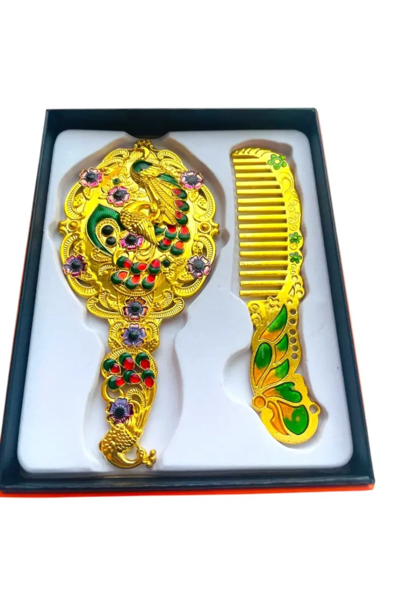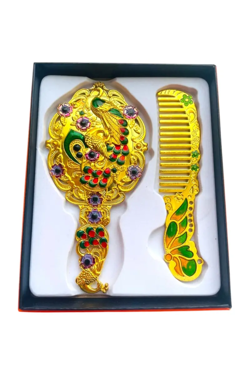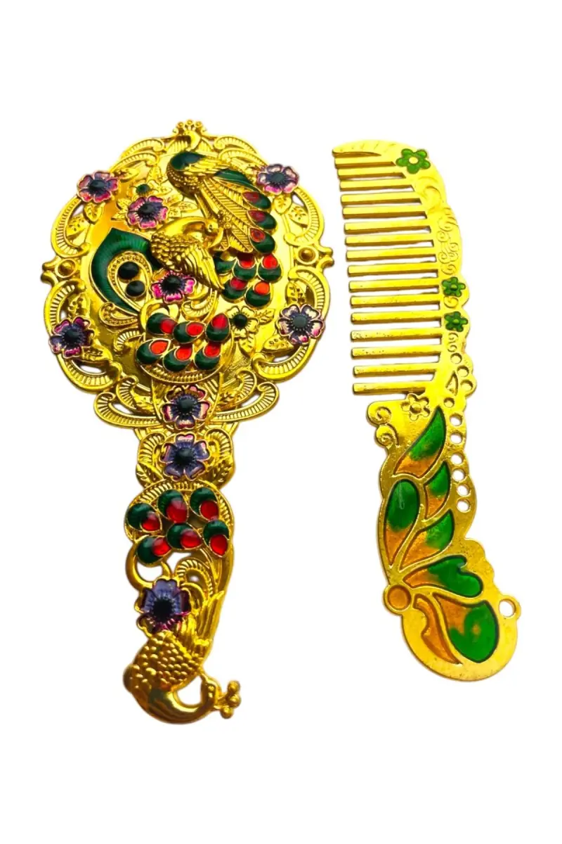 Ayna Tarak Seti, Çiçekli, Metal, 15x12-Parlak Altın