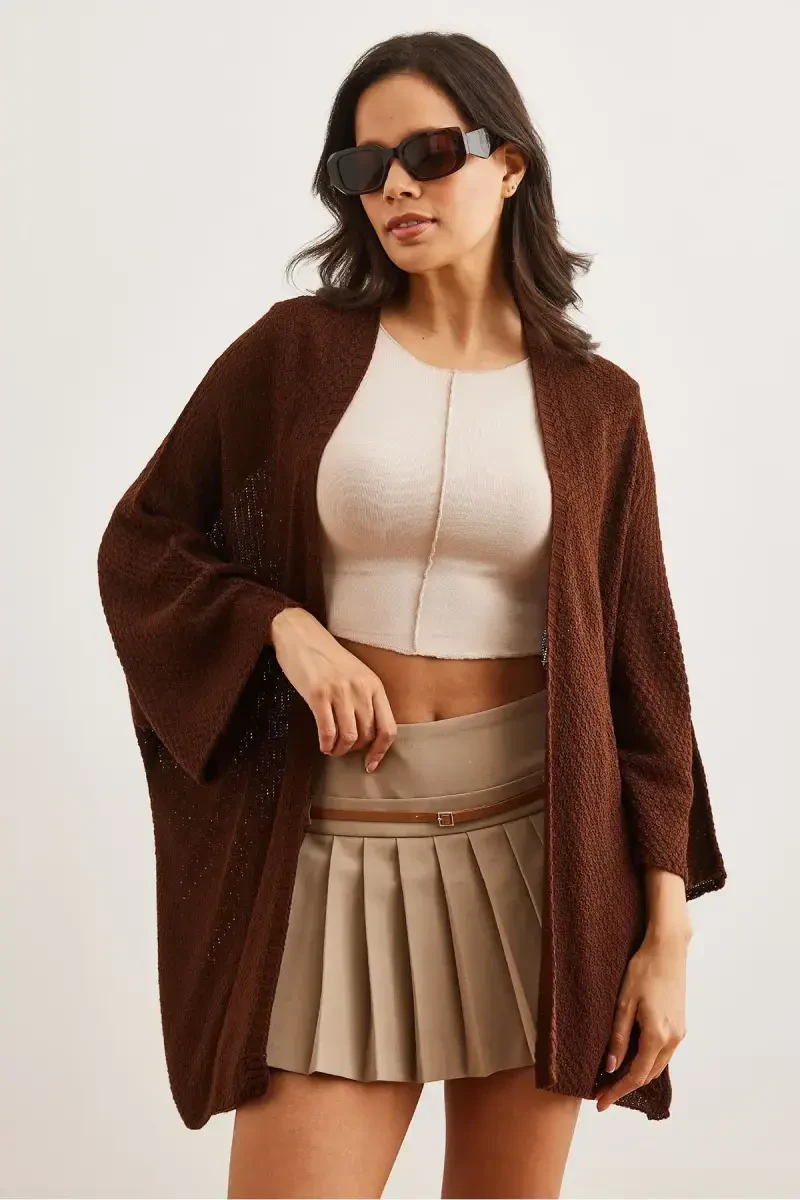 Kadın Acı Kahve Yarasa Baharlık Hırka HRK-19000057-Acı Kahve ile baharın serin esintilerinde şıklığınızı ve konforunuzu bir arada yaşayın. Bu özel tasarım hırka, yarasa kol kesimi ve acı kahve rengi ile gardırobunuzun vazgeçilmezi olacak. Olalook official güvencesiyle sunulan bu hırka, modern ve rahat bir görünüm arayan kadınlar için ideal bir seçimdir. %100 akrilik materyali sayesinde yumuşak bir dokunuşa sahip olan hırka, gün boyu üzerinizde keyifli bir his bırakır. Bahar aylarında üzerinize alabileceğiniz bu şık hırka, hem günlük kullanımda hem de özel anlarda size eşlik edecektir. Acı kahve renginin sıcak tonu, farklı kombinler yapmanıza olanak tanırken, yarasa kol detayı hareket özgürlüğünüzü kısıtlamadan tarzınızı yansıtmanızı sağlar. Hırkanın standart bedeni, farklı vücut tiplerine uyum sağlayacak şekilde tasarlanmıştır. Modelin ölçüleri (Boy: 1.75, Göğüs: 84, Bel: 60, Kalça: 90) ve üzerindeki standart beden hırka, ürünün üzerinizde nasıl duracağına dair size fikir verecektir. Bu hırka, hem pantolonlarla hem de eteklerle kolayca kombinlenebilir, böylece farklı tarzlar yaratmanıza olanak tanır. İster spor bir görünüm elde etmek için jeanlerle, ister daha şık bir kombin için eteklerle tamamlayabilirsiniz. Kadın Acı Kahve Yarasa Baharlık Hırka, sadece şık bir görünüm sunmakla kalmaz, aynı zamanda pratik bir kullanım da sunar. Hafif yapısı sayesinde kolayca taşınabilir ve ihtiyaç duyduğunuzda üzerinize alabilirsiniz. Bu hırka, bahar aylarının değişken hava koşullarına karşı sizi korurken, tarzınızdan ödün vermeden rahat etmenizi sağlar. Acı kahve rengi, doğallığı ve sıcaklığı temsil ederken, yarasa kol detayı ise modern bir dokunuş katmaktadır. Bu hırka ile hem şık hem de rahat olmanın keyfini çıkarın. Olalook official kalitesiyle sunulan bu özel tasarım hırka, gardırobunuzun en sevilen parçalarından biri olacak. Bahar aylarında tarzınızı yansıtmak ve konforunuzdan ödün vermemek için Kadın Acı Kahve Yarasa Baharlık Hırka'yı tercih edin. Şıklığınızı ve rahatlığınızı bir araya getiren bu hırka, her ortamda dikkat çekmenizi sağlayacaktır.