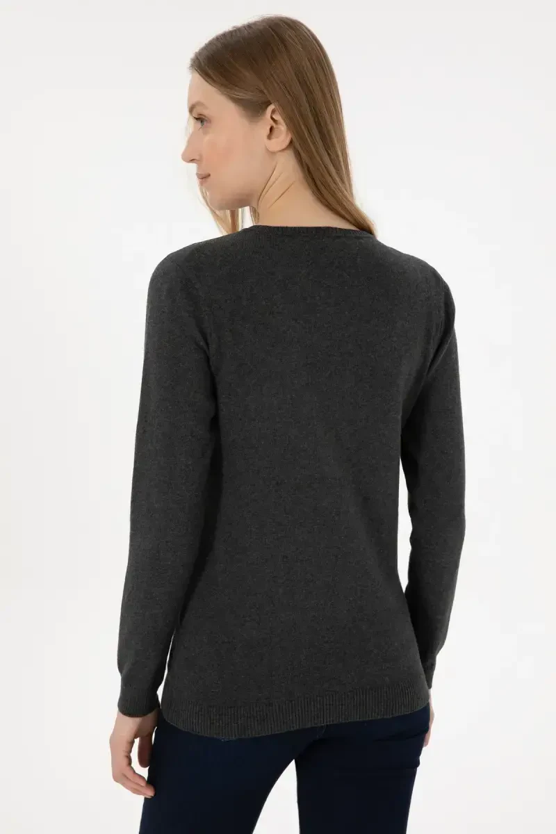 Ayollar Antrasit V Yoqali Asosiy Jumper | Zamonaviy va Qulay