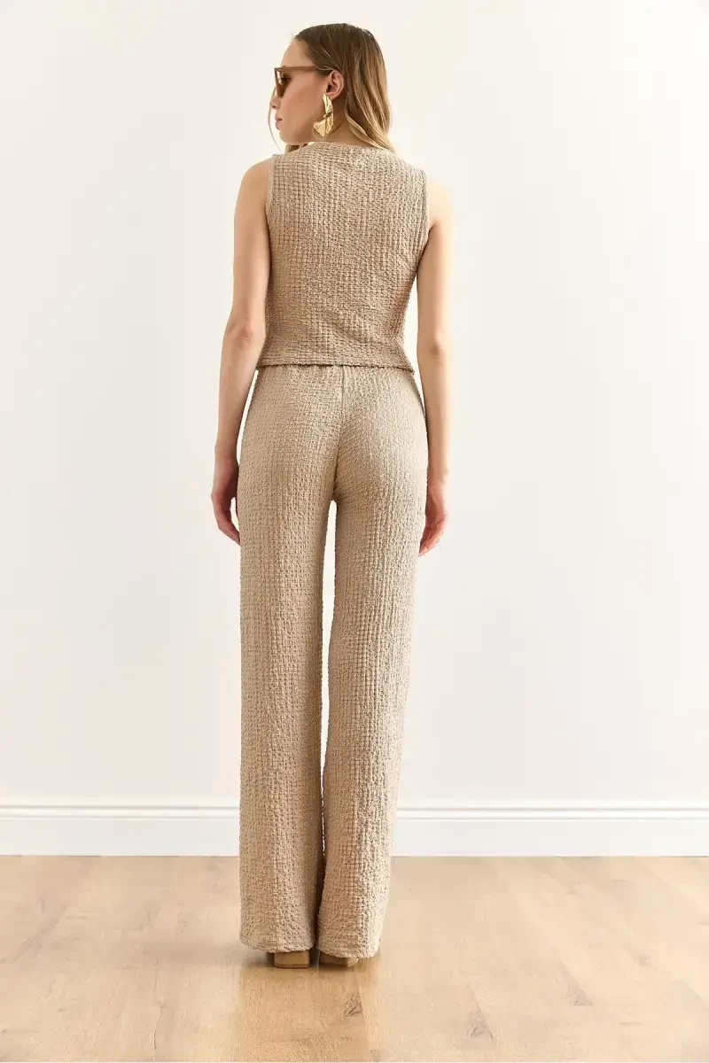 Ayollar uchun bej rangli fakturali jilet shimlar to'plami TKM-19000392 bilan nafislik va qulaylikni birgalikda his eting. Ushbu maxsus dizayndagi to'plam bej rangining tabiiy nafisligi va teksturali matoning zamonaviy teginishi bilan sizning garderobingizning ajralmas qismiga aylanadi. Kundalik foydalanishda ham, maxsus tadbirlarda ham, u sizning uslubingizni har qanday muhitda aks ettirishga imkon beradi. Jilet va shimdan iborat ushbu to'plam mukammal uyg'unlikda ishlab chiqilgan. Jiletning zamonaviy kesimi va shimning qulay mosligi kun bo'yi qulaylikni ta'minlaydi, shu bilan birga diqqatga sazovor ko'rinishga erishishingizga yordam beradi. To'plamning teksturali matosi ham vizual jihatdan boy detalni taqdim etadi, ham teringizga yoqimli teginishni ta'minlaydi.Ushbu to'plam olalook official tomonidan ehtiyotkorlik bilan tayyorlangan va sizga taqdim etilgan. Mahsulot kampaniya narxida sotuvga chiqariladi va zaxiralar bilan cheklangan. Shu sababli, ushbu noyob to'plamga ega bo'lishga shoshiling! Unutmangki, mahsulotni bir nechta sotuvchi sotishi mumkin. Biroq, olalook official kafolati bilan taqdim etilgan ushbu mahsulot sifat va ishonchlilik nuqtai nazaridan eng yaxshi variantdir. Trendyolning afzalliklari bilan siz ushbu to'plamga osongina buyurtma berishingiz va uni qisqa vaqt ichida garderobingizning eng maxsus qismiga aylantirishingiz mumkin.Ayollar uchun bej rangli fakturali jilet shimlar to'plami TKM-19000392 ko'p qirrali foydalanish imkoniyatini taqdim etadi. Jiletni bluzkalar yoki futbolkalar bilan birlashtirib, turli xil uslublarni yaratishingiz mumkin. Shimni ko'ylak yoki sviter bilan to'ldirib, zamonaviy ofis kombinatsiyasini yaratishingiz mumkin. Aksessuar variantlari bilan ham boyitishingiz mumkin bo'lgan ushbu to'plam har qanday muhitga mos keladigan tarzda ishlab chiqilgan.Mahsulot materiallari haqida ma'lumot 90% Polyester va 10% Likradan iborat. Shu tarzda, u ham bardoshli, ham moslashuvchan tuzilishga ega. Polyester matoning uzoq umr ko'rishini ta'minlaydi, Likra esa harakat erkinligingizni cheklamay, tanangizga moslashadi. Mahsulotning Bo'yi/Ko'krak o'lchami 47/32 sm, Bo'yi/Bel o'lchami esa 113/31 sm. Modelning o'lchamlari Bo'yi: 1.73, Ko'krak: 80, Bel: 62, Kalça: 90 sm bo'lib, undagi beden S/36/1'dir. Ushbu ma'lumot sizga to'g'ri beden tanlashda yordam beradi.Ayollar uchun bej rangli fakturali jilet shimlar to'plami TKM-19000392 bilan uslubingizni gapiring. Ushbu noyob to'plam ham nafislikni, ham qulaylikni taqdim etadi va sizning garderobingizning eng sevimli qismiga aylanadi. Hozir buyurtma bering va uslubingizni keyingi bosqichga olib chiqing!