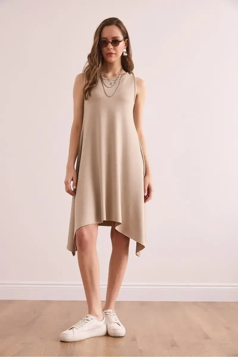 Bej Yengsiz Qo'ng'iroq Ko'ylak | Yumshoq To'qimali Ayollar Ko'ylagi | Yozgi Zamonaviy Ko'ylak