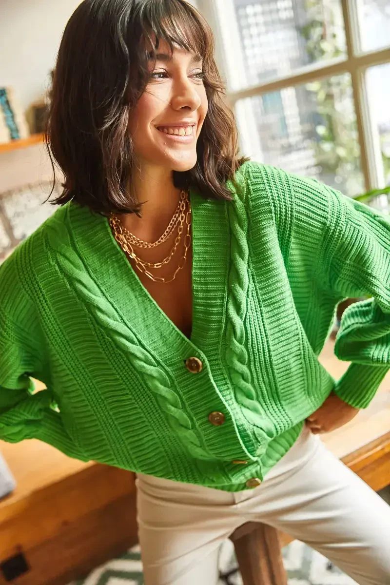 Ayollar uchun pista yashil rangli qalin o'rilgan trikotaj kardigan HRK-19000082-Pista Yashili, nafislik va qulaylikni birlashtirgan va shkafingizning ajralmas qismiga aylanishga nomzod bo'lgan dizayndir. Ushbu maxsus kardigan Olalook Official kafolati bilan taqdim etiladi va cheklangan miqdorda ishlab chiqariladi. Pista yashil rangidagi tabiiylik va hayotiylikni aks ettiruvchi ushbu trikotaj kardigan, qalin o'rilgan detallari bilan ham ko'zni quvontiradigan ko'rinishni taqdim etadi. Sovuq havoda sizni issiq tutadi, ayni paytda nafis va zamonaviy uslubingizdan voz kechmaysiz.Ushbu kardigan bir nechta sotuvchi tomonidan sotilishi mumkin bo'lgan mahsulotlardan farqli o'laroq, Olalook Official tomonidan maxsus ishlab chiqilgan va ishlab chiqarilgan. Shu sababli, mahsulot sifati va o'ziga xosligi haqida tashvishlanishingizga hojat yo'q. Trendyol'da ushbu maxsus dizayndagi kardigandan ko'pi bilan 10 dona buyurtma berish mumkin, korporativ buyurtmalar uchun esa boshqa limitlar bo'lishi mumkin.Ayollar uchun pista yashil rangli qalin o'rilgan trikotaj kardigan 100% akril materialdan tayyorlangan. Akril, yumshoq to'qimasi va issiq tutish xususiyati tufayli sovuq havoda qulay foydalanishni ta'minlaydi. Kardigan o'lchamlari Bo'yi/Ko'kragi: 59/59 sm bo'lib, standart o'lchamda ishlab chiqilgan. Shu sababli, turli xil tana tiplariga osongina moslashadi. Modelning o'lchamlari esa 1.75 bo'y, 89 ko'krak, 64 bel va 92 son shaklida. Modelning ustidagi o'lcham standart o'lchamdir.Kardiganning pista yashil rangi, studiya suratlaridagi yorug'lik farqlari tufayli ozgina o'zgarishlar ko'rsatishi mumkin. Ammo, mahsulotning umumiy ko'rinishi va nafisligi o'zgarmaydi. Ushbu trikotaj kardigan, ham kundalik foydalanishda, ham maxsus kunlarda bemalol tanlanishi mumkin. Jinslar, yubkalar yoki ko'ylaklar bilan kombinatsiyalab turli xil uslublar yaratishingiz mumkin.Olalook Official tomonidan taqdim etilgan ushbu maxsus dizayndagi kardigan, 15 kun ichida bepul qaytarish imkoniyatini taqdim etadi. Mahsulotdan mamnun bo'lmasangiz, osongina qaytarishingiz mumkin. Batafsil ma'lumot uchun Trendyol'ning qaytarish shartlari sahifasiga tashrif buyurishingiz mumkin.Ayollar uchun pista yashil rangli qalin o'rilgan trikotaj kardigan HRK-19000082-Pista Yashili bilan ham nafis, ham issiq bo'ling!
