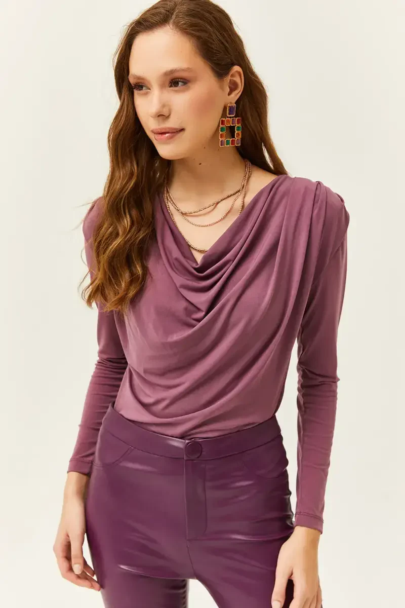 Kadın Gül Kurusu Vatkalı Pileli Degaje Yaka Bluz BLZ-19002419-Gül Kurusu, şıklığı ve rahatlığı bir araya getiren özel bir tasarıma sahiptir. Bu bluz, gardırobunuzun vazgeçilmez parçalarından biri olmaya aday. Gül kurusu rengi, zarafeti ve feminenliği ön plana çıkarırken, vatkalı omuz detayı ve pileli degaje yaka, bluzu farklı ve modern bir görünüme kavuşturuyor. Her ortamda dikkat çekmenizi sağlayacak bu bluz, özel davetlerden günlük kullanıma kadar geniş bir yelpazede tercih edilebilir.%100 polyester kumaşı sayesinde hafif ve rahat bir kullanım sunar. Kumaşın yumuşak dokusu, gün boyu konforlu hissetmenizi sağlar. Vatkalı omuzlar, duruşunuzu daha dik ve güçlü gösterirken, pileli degaje yaka detayı, bluzun şıklığını artırır. Bu tasarım, hem klasik hem de modern tarzı benimseyen kadınlar için ideal bir seçimdir.Bluzun kesimi, vücuda oturan ancak hareket özgürlüğünüzü kısıtlamayan bir yapıdadır. Bu sayede, hem şık görünürken hem de gün boyu rahat edebilirsiniz. Gül kurusu rengi, farklı kombinler oluşturmanıza olanak tanır. İster eteklerle, ister pantolonlarla kombinleyerek farklı tarzlar yaratabilirsiniz.Bu bluz, Trendyol güvencesiyle sunulmaktadır. Birden fazla satıcı tarafından satışa sunulabilen bu ürün, satıcı puanlarına, teslimat statülerine, promosyonlara ve kargo durumuna göre sıralanmaktadır. Trendyol, müşteri memnuniyetini ön planda tutarak, en iyi alışveriş deneyimini sunmayı hedefler. Üründen memnun kalmadığınız takdirde, 15 gün içinde ücretsiz iade imkanı bulunmaktadır.Modelin üzerindeki beden S/36/1'dir ve modelin ölçüleri Boy: 1.76, Göğüs: 85, Bel: 61, Kalça: 91'dir. Bu bilgiler, bluzu satın alırken doğru bedeni seçmenize yardımcı olacaktır. Lütfen renklerin stüdyo çekimlerinde ışık farklılığından dolayı değişiklik gösterebileceğini unutmayın. Bu şık ve zarif bluz ile her zaman stil sahibi ve özgüvenli görünebilirsiniz. Gardırobunuzdaki diğer parçalarla kolayca kombinleyebileceğiniz bu bluz, hem günlük kullanımda hem de özel günlerde size eşlik edecektir.