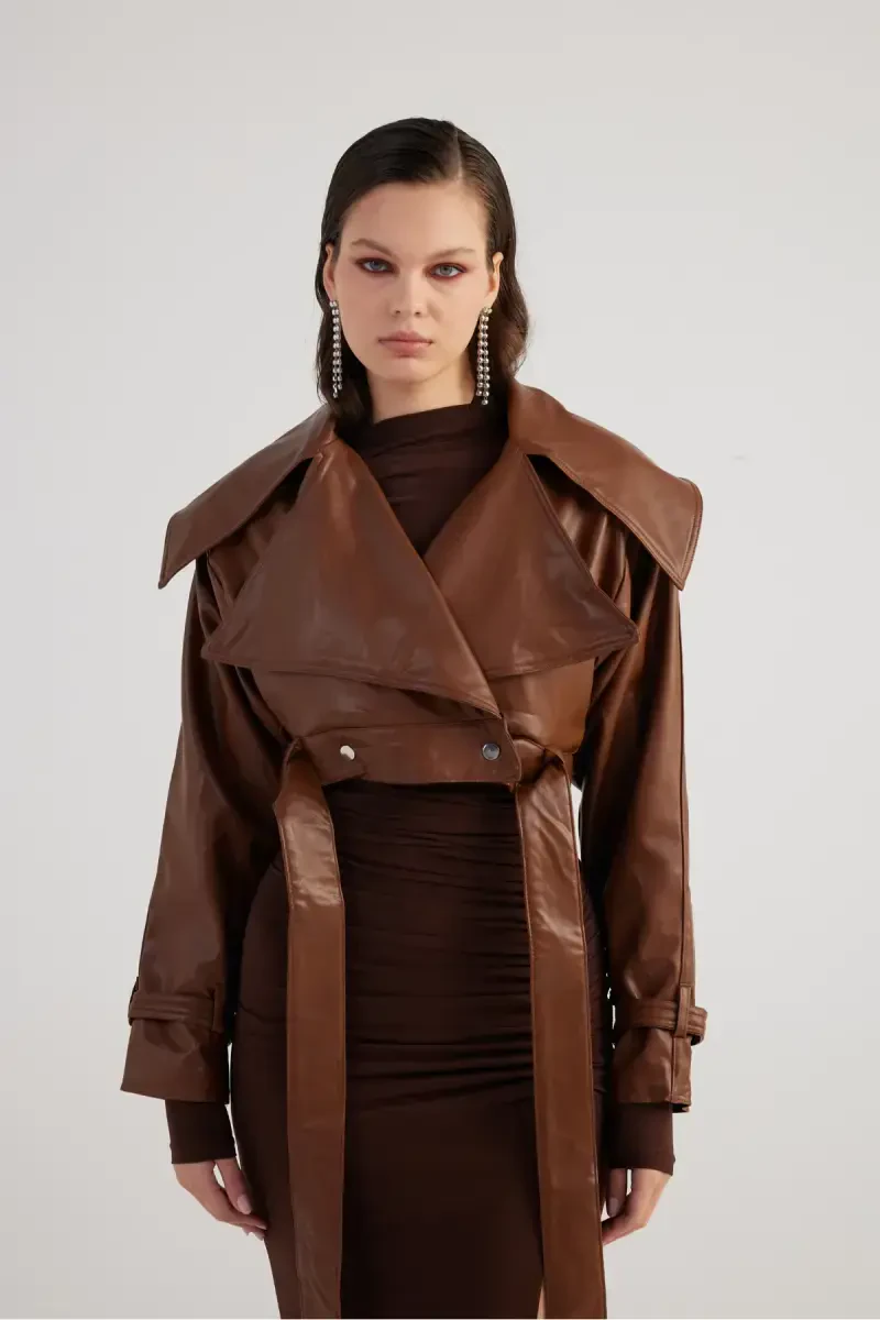 ayollar charm ko'ylagi, jigarrang ko'ylagi, tugmachali ko'ylagi, astarli ko'ylagi, Neeko ko'ylagi, poliuretan ko'ylagi, ayollar kiyimi, charm kurtka, jigarrang charm ko'ylagi, mavsumiy ko'ylagi