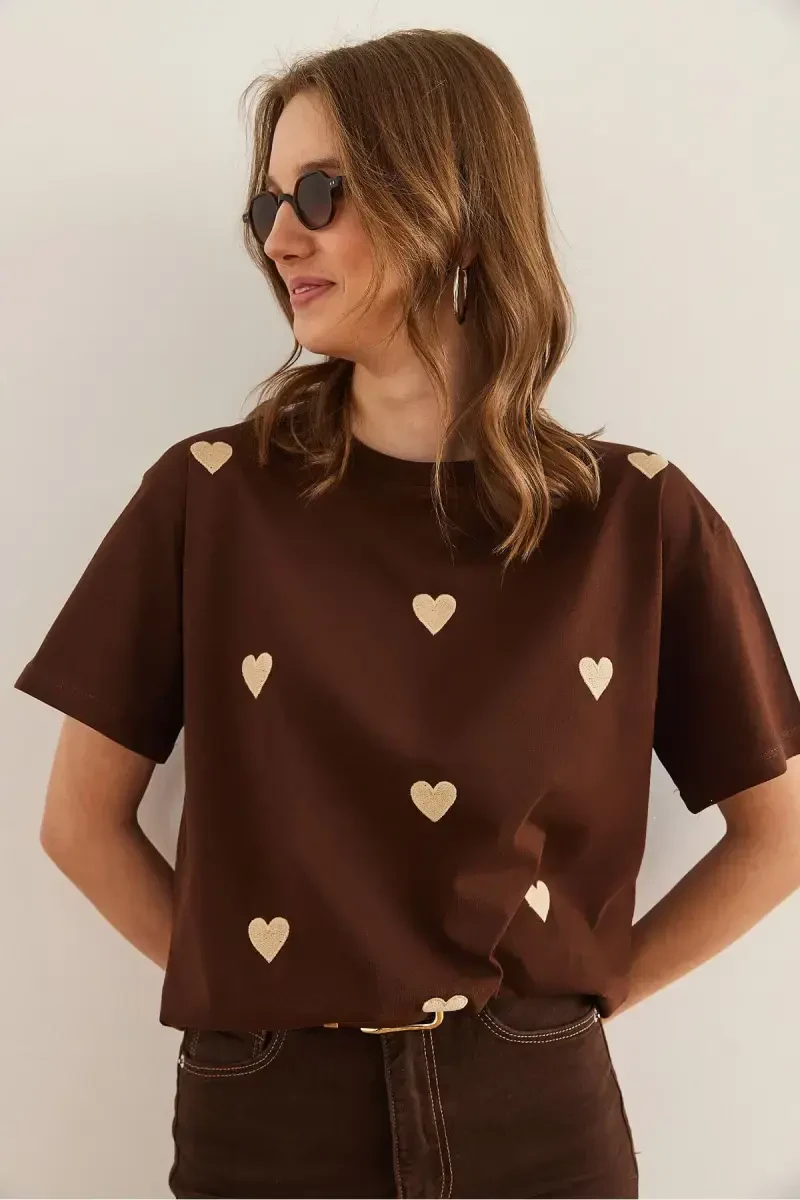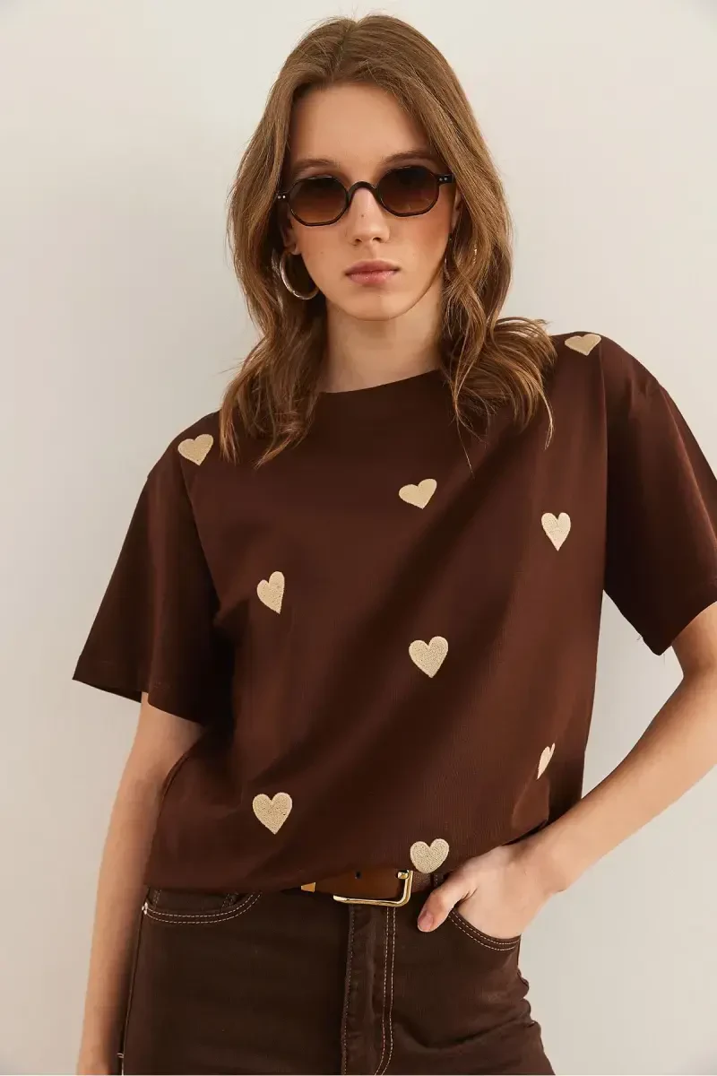 Ayollar uchun jigarrang yurak naqshli paxta regular fit futbolka, garderobingizning ajralmas qismiga aylanishga nomzod! Ushbu zamonaviy va qulay futbolka ham kundalik foydalanish, ham maxsus kunlaringiz uchun ajoyib tanlovdir. Trendyol kafolati bilan eshigingizgacha keladigan ushbu mahsulot yuqori sifatli material va ehtiyotkorlik bilan ishlanganligi tufayli uzoq umr ko'rishni ta'minlaydi. Jigarrang ohang har qanday kombinatsiya bilan oson moslashadi, yurak naqshining detali esa futbolkaga romantik va nafis tus beradi. Regular fit kesimi tanangizni siqmaydi, kun bo'yi erkin harakatlanishga imkon beradi. Xoh jinsi shimlar bilan sport ko'rinishiga ega bo'ling, xoh yubkalar bilan yanada zamonaviy uslub yarating, bu futbolka har qanday holatda ham sizga hamroh bo'ladi. Mahsulotning paxta matosi teringizga nafas olish imkonini beradi va terlashni oldini oladi, shuning uchun kun bo'yi tetik bo'lib qolasiz. Trendyolning kampaniya imkoniyatlaridan foydalanib, ushbu maxsus futbolkaga ega bo'lish imkoniyatini qo'ldan boy bermang! Unutmang, mahsulotni bir nechta sotuvchi sotishi mumkin, shuning uchun narxlar va sotuvchilarning reytinglarini solishtirib, sizga eng mos variantni topishingiz mumkin. Ushbu futbolkadan ko'pi bilan 10 ta buyurtma berishingiz mumkin, shuning uchun uni yaqinlaringizga ham sovg'a qilishingiz mumkin. Agar mahsulotdan qoniqmasangiz, 15 kun ichida bepul qaytarish huquqidan foydalanishingiz mumkin. Chiqish va qulaylikni birlashtirgan ushbu futbolka garderobingizning ajralmas qismiga aylanadi. Yurak naqshining nafisligi, jigarrang ohangning iliqligi va paxta matosining qulayligi bilan ushbu futbolka har doim sizga hamroh bo'lishga tayyor. Trendyolning tez yetkazib berish va ishonchli xarid qilish imkoniyatlari bilan ushbu mahsulotga oson ega bo'lishingiz va uslubingizni bir qadam oldinga olib chiqishingiz mumkin. Ushbu futbolka shunchaki kiyim emas, balki ayni paytda ifoda shaklidir. O'zingizni maxsus his qilish va uslubingizni aks ettirish uchun ushbu futbolkani tanlang. Ham kundalik hayotda, ham maxsus lahzalarda o'z chiroyingizni namoyish eting. Unutmang, bu futbolka shunchaki boshlanishdir. Uslubingizni to'ldiradigan boshqa mahsulotlar uchun Trendyolni o'rganishni davom eting va o'ziga xos uslubingizni yarating.