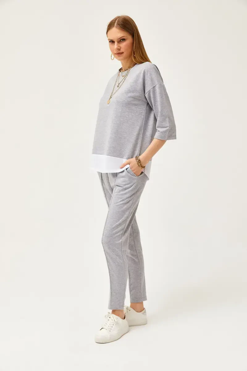 Ayollar uchun kulrang bezakli yuqori va pastki to'plam TKM-19000274-Kulrang bilan nafislik va qulaylikni birga his eting. Ushbu maxsus dizayndagi to'plam 70% polyester va 30% paxta aralashmasi tufayli kun bo'yi qulaylikni ta'minlaydi. Uyda dam olayotganda ham, tashqarida do'stlaringiz bilan uchrashayotganda ham bemalol tanlashingiz mumkin bo'lgan ushbu to'plam zamonaviy va nafis ko'rinishi bilan ajralib turadi. Kulrang rang har qanday uslubga osongina moslashadi, bezak detallari esa to'plamga o'ziga xos havo beradi. Yuqori va pastki qismlarning uyg'unligi sizni kombinatsiya qilish tashvishidan xalos qiladi va doimo zamonaviy bo'lishingizni ta'minlaydi. Yuqori qismining bo'yi 64 sm va ko'krak o'lchami 50 sm, pastki qismining bo'yi 90 sm va bel o'lchami 32 sm bo'lgan ideal kesimga ega. Modeldagi S/36/1 o'lchami mahsulotning sizga qanday mos kelishi haqida tasavvur berishi mumkin. Ushbu to'plam Trendyol kafolati bilan sizning eshigingizgacha etib boradi va 15 kun ichida bepul qaytarish imkoniyatini beradi. Kampaniya narxida taklif etilayotgan ushbu mahsulotga zaxiralar tugamasdan buyurtma bering va garderobingizni yangilang. Esda tuting, ushbu mahsulotdan ko'pi bilan 10 dona buyurtma berishingiz mumkin. Korporativ buyurtmalar uchun turli xil cheklovlar amal qiladi. Studiya suratga olish paytida yorug'lik farqi tufayli ranglarda kichik o'zgarishlar bo'lishi mumkinligini unutmang. Ushbu to'plam nafaqat zamonaviy, balki amaliy tanlovdir. Uni o'zingiz uchun ham, yaqinlaringizga sovg'a sifatida ham o'ylab ko'rishingiz mumkin. Qulaylik va nafislikni birlashtirgan ushbu to'plamni qo'ldan boy bermang!