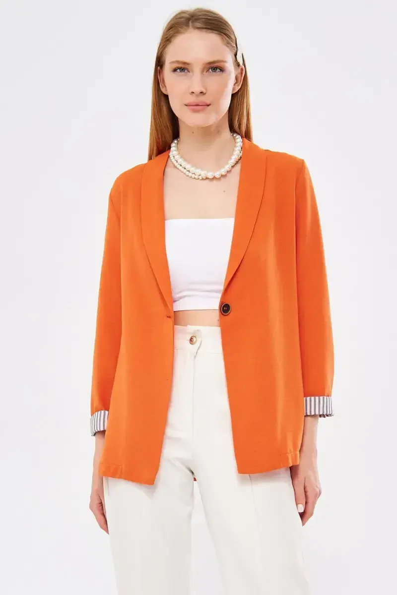 Ayollar uchun ochiq to'q sariq, ichki qismi chiziqli, bitta tugmali pidjak ARM-22K001122-Ochiq to'q sariq, ARMONIKA sifati bilan garderobingizning ajralmas qismiga aylanishga nomzod. Ochiq to'q sariq rangi bilan tetiklantiruvchi ko'rinish taqdim etadigan ushbu blazer pidjak, ichki qismidagi chiziqli detallari bilan o'zgacha ko'rinishga ega. Oddiy naqsh tufayli uni osonlik bilan birlashtirish mumkin va har qanday muhitda o'z chiroyingizni namoyish etishingiz mumkin. Pidjak yoqasining dizayni pidjakga klassik va zamonaviy ko'rinish beradi, oddiy bichimi esa kun bo'yi o'zingizni qulay his qilishingizni kafolatlaydi. Uzunligi va uzun qollari sizga mavsumlar oralig'ida ham zamonaviy ko'rinishga ega bo'lishingizga, ham o'zingizni qulay his qilishingizga yordam beradi. Ushbu pidjak kundalik kiyim uslubini qabul qiluvchilar uchun ideal tanlovdir. Kundalik ishlaringizda, do'stlaringiz bilan uchrashuvlarda yoki ofisda zamonaviy ko'rinishga ega bo'lishni xohlaganingizda, uni osongina tanlashingiz mumkin. To'qilgan mato turi pidjakning chidamliligini oshiradi, paxta va polyester aralashmasidan tayyorlanganligi esa yumshoq teginishni ta'minlaydi. Standart qol turi foydalanish qulayligini ta'minlaydi, zamonaviy dizayni esa yosh va dinamik uslubingizni aks ettirishga imkon beradi. Bitta tugma detali pidjakga nafislik qo'shadi, uni osongina kiyib va echishingizga imkon beradi. Ushbu pidjak garderobingizdagi boshqa kiyimlar bilan osongina moslashib, turli kombinatsiyalarni yaratishga imkon beradi. Jinsi shimlar bilan sport ko'rinishini yaratishingiz mumkin, yubka yoki ko'ylaklar bilan esa yanada zamonaviy kombinatsiya yaratishingiz mumkin. Aksessuarlaringiz bilan to'ldirib, uslubingizni individuallashtirishingiz mumkin. Armonikaning ushbu maxsus dizayni ham uslubni, ham qulaylikni birlashtirib, kundalik hayotingizda sizga hamroh bo'lishga tayyor. Type 2 yuvish ko'rsatmasiga muvofiq osongina tozalanadi, shuning uchun uzoq muddatli foydalanish imkoniyatini taqdim etadi. Ushbu pidjak nafaqat kiyim, balki sizning uslubingizni aks ettiruvchi va o'zingizni yaxshi his qilishingizga yordam beradigan qismdir. Garderobingizda bo'lishi kerak bo'lgan ushbu maxsus dizaynni kashf eting va uslubingizni bir qadam oldinga olib chiqing.