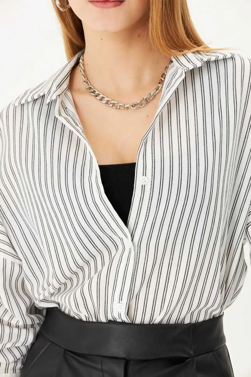Ayollar uchun oq-qora ingichka chiziqli oversize uzun basic ko'ylak ARM-22Y001185-Oq, sizning garderobingizning ajralmas qismiga aylanadi, nafislik va qulaylikni birlashtirgan dizaynga ega. Kundalik foydalanishdan tortib, maxsus lahzalaringizgacha bo'lgan har qanday muhitda osongina afzal ko'rishingiz mumkin bo'lgan ushbu ko'ylak, zamonaviy va uslubga ega ayollarning e'tiborini tortadi. 100% paxtadan ishlab chiqarilganligi sababli, kun bo'yi nafas oladigan va qulay foydalanishni ta'minlaydi, uzun kesimi va oversize modeli bilan ham trendlarni ushlashingizga imkon beradi, ham harakat erkinligingizni cheklamaydi. Oq va qoraning ingichka chiziqli uyg'unligi, ko'ylakka abadiy ko'rinish beradi, shu bilan birga turli xil kombinatsiyalarni yaratishga imkon beradi. Xoh jinsilar bilan sport uslubini yarating, xoh yubkalar bilan yanada nafis ko'rinishga erishing, bu ko'ylak har qanday uslubingizga osongina moslasha oladi. Tugmali dizayni, foydalanish qulayligini ta'minlaydi, shuningdek, ko'ylakning oldini ochiq qoldirib, turli xil uslublar yaratishingiz mumkin. Uzun yengli bo'lishi, salqin havoda sizni issiq tutsa, issiq havoda yenglaringizni shimarib, yanada qulay foydalanishni ta'minlashingiz mumkin. Asosiy dizayni tufayli, har qanday aksessuar va poyabzal bilan osongina uyg'unlashtirishingiz, o'z uslubingizni aks ettirishingiz mumkin. Modelning ustidagi S/36/1 o'lcham, mahsulotning qanday o'lchamda ekanligi haqida sizga fikr beradi, o'zingizning o'lchamingizga mos keladiganini tanlab, mukammal ko'rinishga erishishingiz mumkin. Bu ko'ylak, nafaqat nafis, balki amaliy tanlovdir. Kir yuvish mashinasida yuvish mumkin bo'lishi, uning parvarishini osonlashtiradi, shu bilan birga uzoq muddatli foydalanishni ta'minlaydi. Ayollar uchun oq-qora ingichka chiziqli oversize uzun basic ko'ylak ARM-22Y001185-Oq bilan o'z uslubingizni namoyon qiling va har qanday muhitda e'tiborni o'zingizga jalb qiling. Bu ko'ylak, nafaqat kiyim, balki uslub ifodasidir.