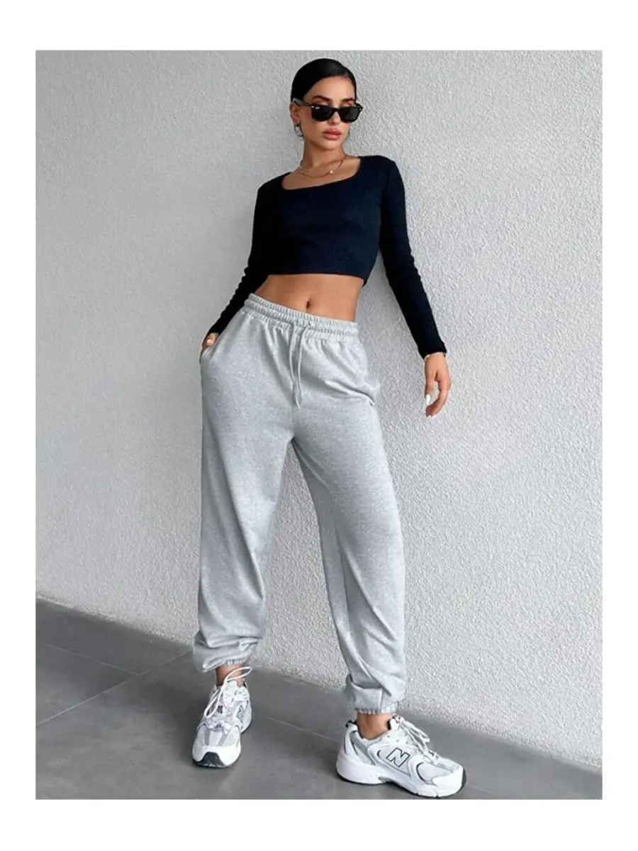 Ayollar sport kostyumi, keng sport kostyumi, kulrang sport kostyumi, burama detallari bor sport kostyumi, qulay sport kostyumi, kundalik sport kostyumi, sport sport kostyumi, zamonaviy sport kostyumi, SPR24EA89, ayollar kiyimi