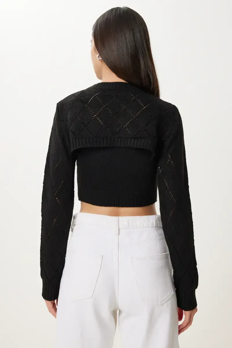 Qora baliqchi yoqali triko krop atlet kostyumi | Ayollar modasi