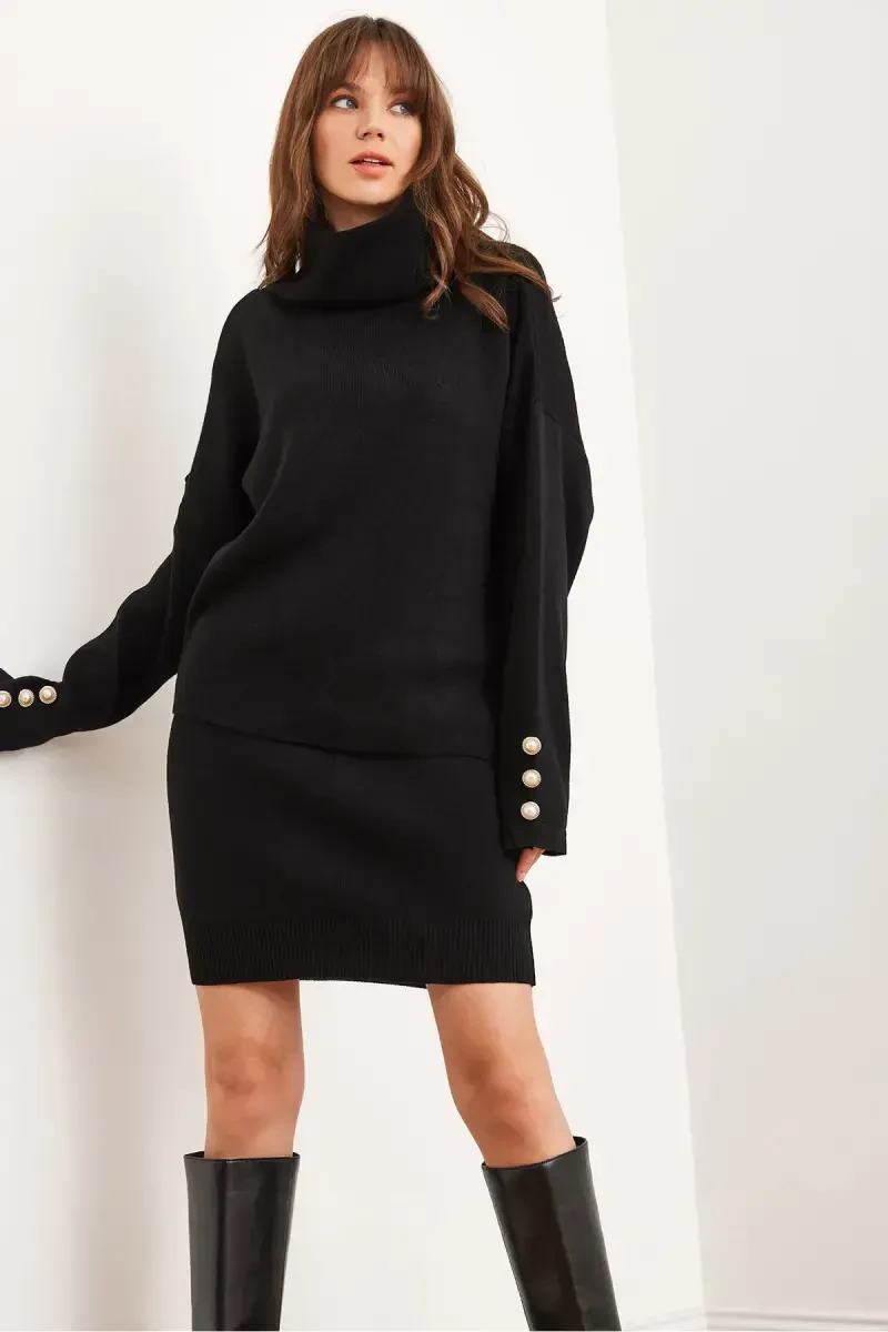 Olalook official tomonidan taqdim etilgan Ayollar uchun qora tugmali detallarga ega kozok va plili etek trikotaj kostyumi nafislik va qulaylikni birlashtirgan maxsus dizayndir. TKM-19000329-Qora mahsulot kodi bilan taqdim etilgan ushbu trikotaj kostyum zamonaviy ayolning garderobida bo'lishi kerak bo'lgan narsalardan biridir. Yuqori qismi tugma detallari bilan boyitilgan kozok nafislikni oshiradi, pastki qismi plili etek esa harakat erkinligini ta'minlaydi va ayollik ko'rinishini yaratadi. Ushbu kostyum kundalik foydalanish va maxsus tadbirlar uchun ideal tanlovdir. Yuqori sifatli akril material tufayli uzoq umr va bardoshlidir. Sovuq havoda issiq saqlaydi, ayni paytda o'zining zamonaviy dizayni bilan har qanday muhitda e'tiborni tortadi. Ushbu mahsulotni bir nechta sotuvchi taklif qilishi mumkin, ular sotuvchi reytinglari, yetkazib berish holati, aktsiyalar, yuk tashish imtiyozlari va tez yetkazib berish variantlari kabi omillarga qarab saralanadi. Trendyol ushbu mahsulotdan ko'pi bilan 5 dona buyurtma berishga ruxsat beradi, korporativ buyurtmalar uchun esa turli xil cheklovlar qo'llanilishi mumkin. Agar mahsulotingizdan mamnun bo'lmasangiz, 15 kun ichida bepul qaytarib berish imkoniyatidan foydalanishingiz mumkin. Ushbu trikotaj kostyum qulaylik va nafislikni bir vaqtning o'zida qidirayotgan ayollar uchun ajoyib tanlovdir. Zamonaviy dizayni, sifatli materiali va qulay tuzilishi bilan u sizning garderobingizning ajralmas qismiga aylanadi. Iltimos, studiya suratga olish paytida yorug'lik farqlari tufayli ranglarda kichik o'zgarishlar bo'lishi mumkinligini unutmang. Ushbu maxsus dizayndagi trikotaj kostyum bilan har doim o'zingizni nafis va qulay his eting.